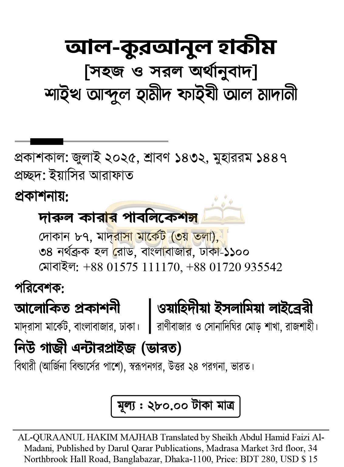 বর্তমান গ্রন্থটি সুমহান আল্লাহর পবিত্র বাণীর অর্থানুবাদ, যা আরবী ভাষায় পৃথিবীর শ্রেষ্ঠ স্থানে, শ্রেষ্ঠ সময়ে, শ্রেষ্ঠ ফিরিশতার মাধ্যমে, শ্রেষ্ঠ রসূলের উপর অবতীর্ণ হয়েছে।