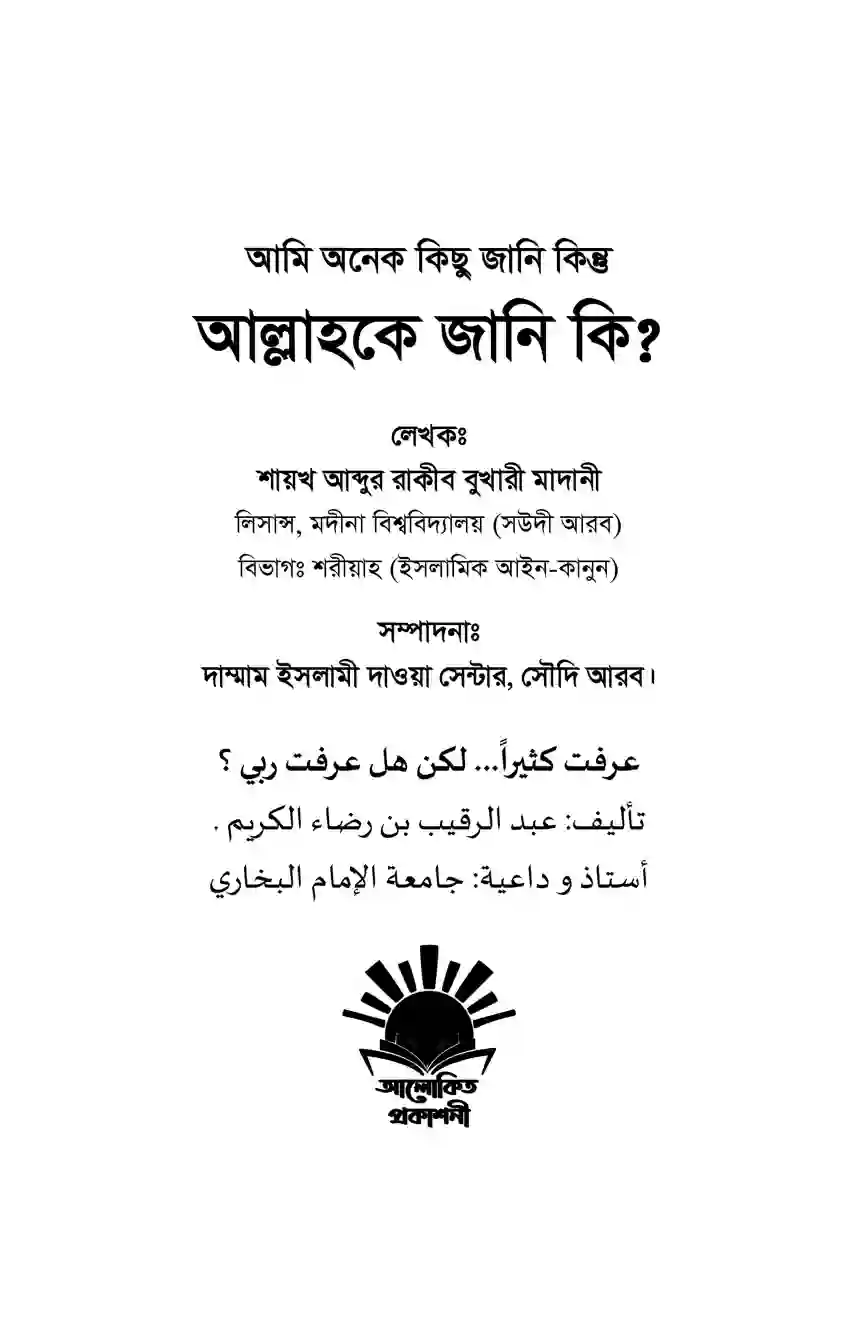 বক্ষ্যমাণ বইটি আল্লাহ সম্পর্কে মানুষের অজ্ঞতার সেই শূন্যতা পূরণের সামান্য প্রয়াস মাত্র।
