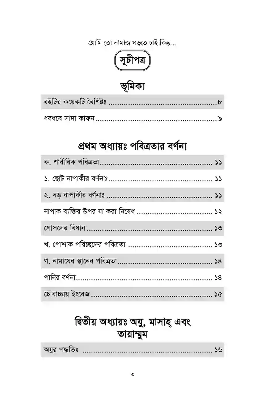 নামায না পড়ার এসব ঠুনকো অজুহাতের সহজ সমাধানার্থে এবং সমাজের সকল শ্রেণীর মুসলিম/মুসলিমা ভাই—বোনদের নামাযের প্রতি উদ্বুদ্ধ করতে এই পুস্তকটি সংক্ষেপে লেখা হল। যদিও বাজারে, বাজারী বই—পুস্তকের ছড়াছড়ি কিন্তু সরাসরি কুরআন ও সহীহ হাদীস হতে সংকলিত পবিত্রতা, অযু এবং নামাযের বিধিবিধান সম্পর্কীও বই পুস্তকের যথেষ্ট অভাব এখনও লক্ষ্য করা যায়। আশা করি এ শুন্যতা পূরণে বইটি বিশেষ ভূমিকা রাখবে। আল্লাহ তুমি কবূল কর! আমীন