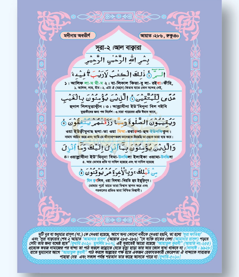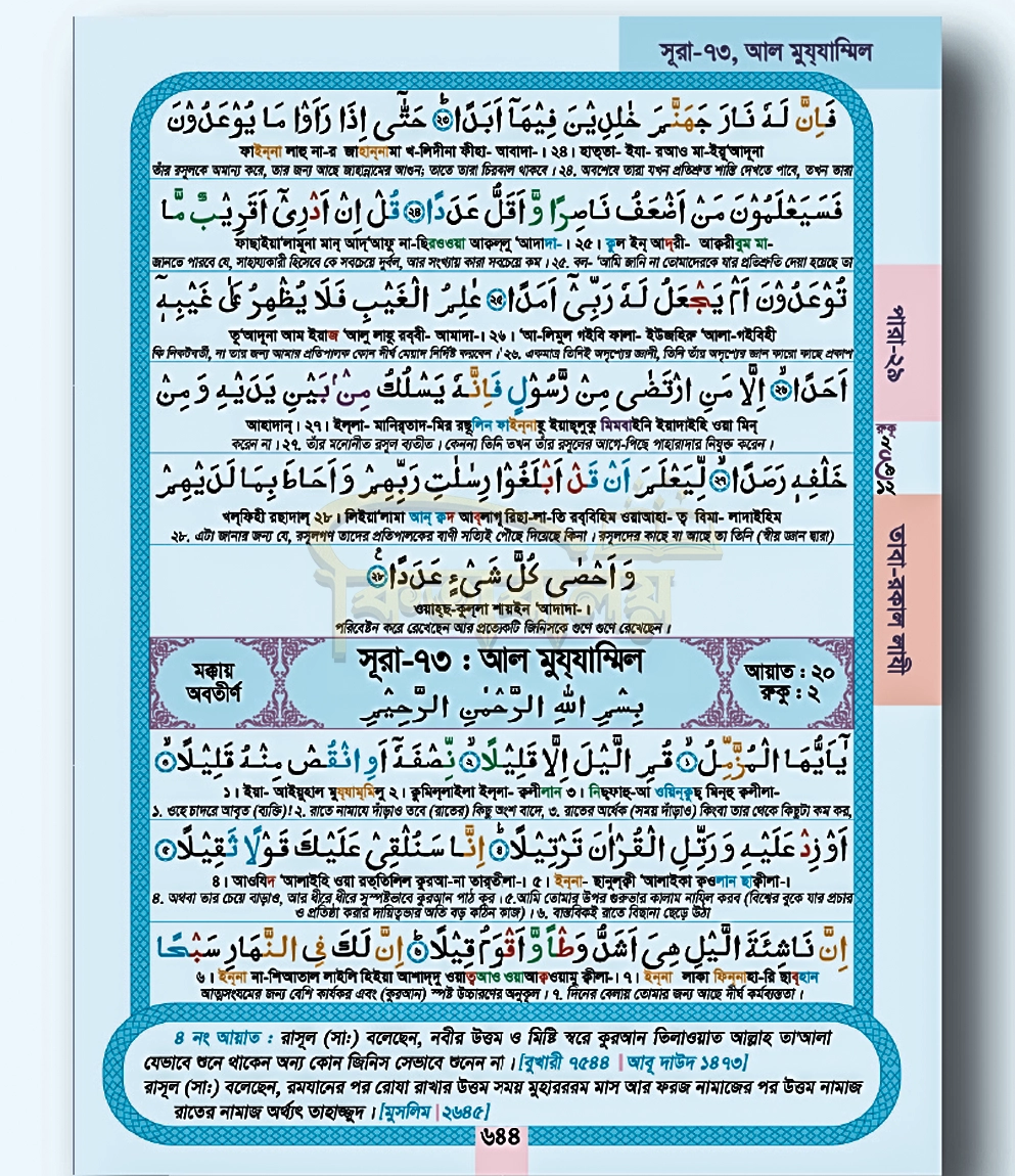 এই সহজ কুরআন মুসহাফটি এতে থাকা বড় হরফ, তাজবীদের রঙিন নির্দেশনা এবং সঠিক তিলাওয়াতের জন্য ওয়াকফ-ইবতিদার চিহ্নগুলো কুরআন শেখাকে সহজ ও আনন্দদায়ক করে তুলবে। বাংলা আয়াত নম্বর এবং বিষয়ভিত্তিক সূচিপত্র তাদের কুরআনের আয়াত সম্পর্কে আরও গভীরভাবে জানতে সাহায্য করবে।