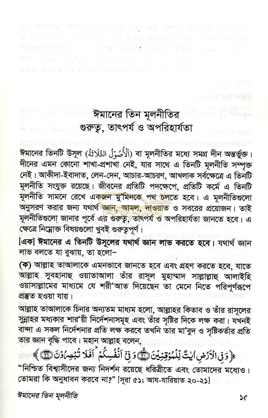 ঈমানের তিন মূলনীতি ‘দীন-ইসলাম’-এর সর্বাধিক অগ্রাধিকারপ্রাপ্ত বিষয়। ‘ঈমানের তিন মূলনীতি’সম্পর্কে বিস্তারিত জ্ঞান অর্জন করা প্রত্যেক মুসলিমের জন্য ফরজে আইন বা অবশ্য-কর্তব্য।পৃথিবীর সব পরীক্ষার প্রস্তুতির জন্য নোট গাইড বুক রচনা করা হয়।কবরের পরীক্ষায় উত্তীর্ণ হওয়ার জন্য সংক্ষিপ্তভাবে এর তিনটি মূলনীতি সম্পর্কে তুলে ধরা হয়েছে গুরুত্বপূর্ণ এই গ্রন্থটিতে।