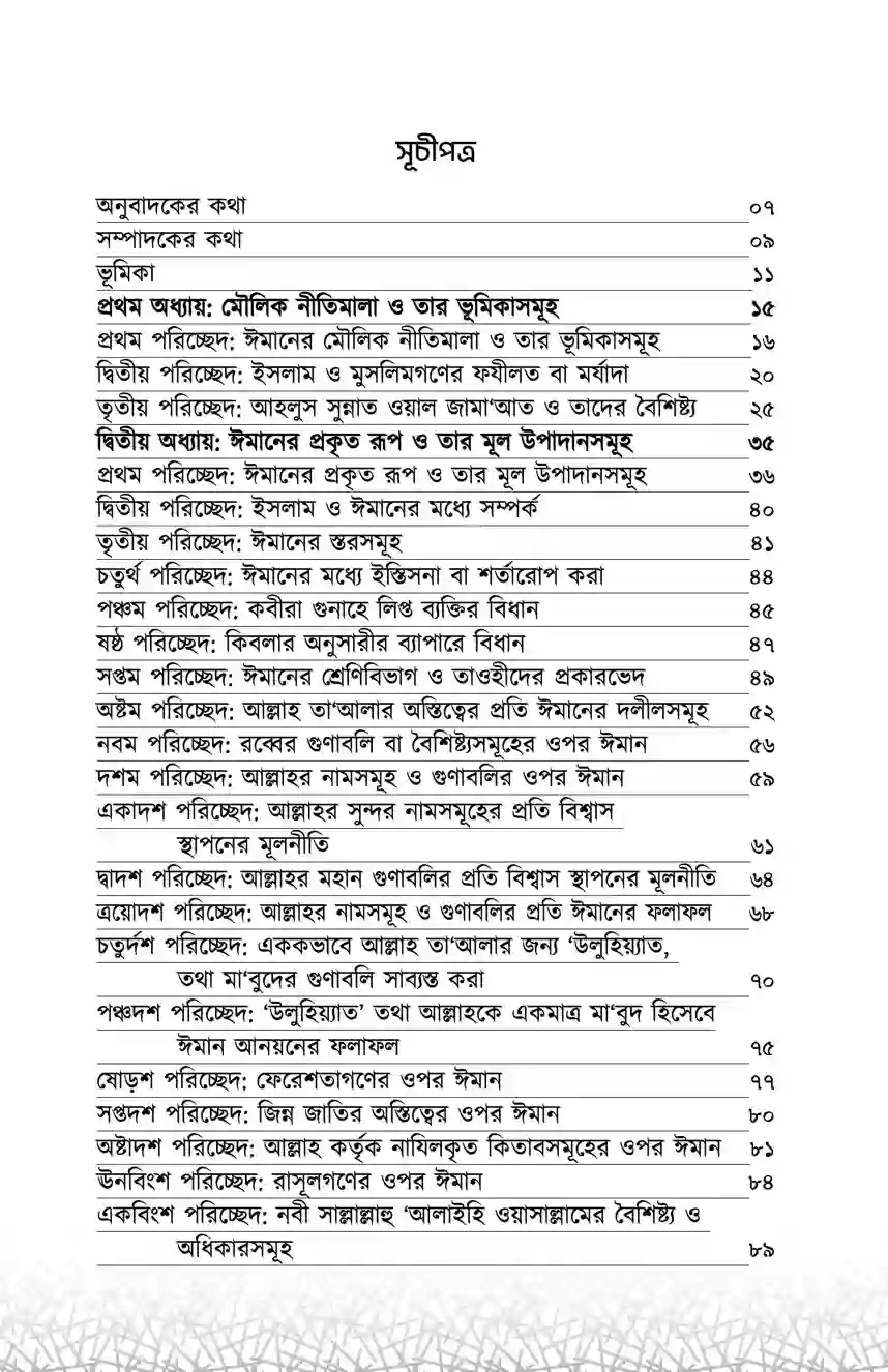 দীনকে পরিপূর্ণভাবে জানতে হলে দীনের সংবাদ ও দীনের আদেশ উভয় দিক সম্পর্কে ওয়াকিফহাল হতে হবে। প্রথমটি হচ্ছে আকীদা আর দ্বিতীয়টি হচ্ছে শরী’আহ। আকীদা ও শরী’আহ মিলেই পূর্ণ দীন। আকীদা ও ঈমান দু’টি কাছাকাছি শব্দ। উভয়টি দ্বারাই গায়েবী বিষয়ে প্রদত্ত সংবাদসমূহ মেনে নেয়াকে বুঝানো হয়। মুসলিম হতে হলে প্রথমেই এ আকীদা-বিশ্বাস ঠিক করতে হবে, তারপর শরী’আত মেনে চলতে হবে। জানা কথা যে, আকীদার মূলনীতিসমূহ আল্লাহ তা’আলার সত্তা, নাম-গুণ, কর্ম ও অধিকারকে ঘিরে আবর্তিত। আমাদের সালাফে সালেহীন আকীদার বিষয়টি যথাযথভাবে সুদৃঢ় করে বর্ণনা করে গেছেন। যেখানে অন্য কারও হস্তক্ষেপ করার কিছু নেই। এ ব্যাপারে তারা শত শত গ্রন্থও রচনা করেছেন। সকল গ্রন্থ পড়ে এসব মূলনীতি জমা করা নিঃসন্দেহে গুরুত্বপূর্ণ কাজ বলে বিবেচিত। তাই আকীদা ও মানহাজ বিষয়ক একটি পূর্ণাঙ্গ মতন বা মূলভাষ্যের সমন্বিত গ্রন্থের প্রয়োজনীয়তা অনেকেই অনুভব করে থাকবেন। আমাদের আলোচ্য গ্রন্থটি এ বিষয়ের অভাব কিছুটা হলেও পূরণ করবে বলে আমার বিশ্বাস।