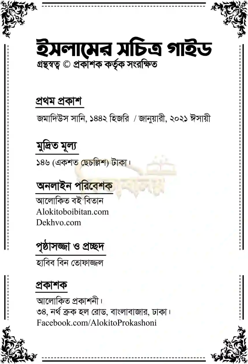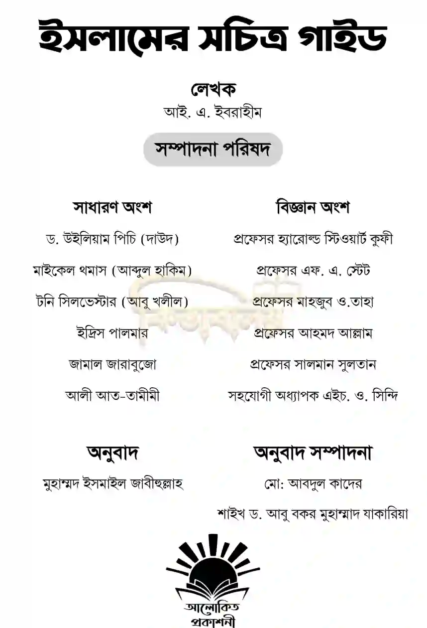 আল্লাহর এক অপূর্ব সৃষ্টি মহাবিশ্বের প্রতিটি কণায় লুকিয়ে আছে তাঁর অস্তিত্বের নিদর্শন। আর এই নিদর্শনগুলোর সবচেয়ে সুস্পষ্ট প্রমাণ মেলে কুরআনুল কারীমে এবং ইসলামের চিরন্তন শিক্ষায়। সেইসব প্রমাণ এবং ইসলামের সুমহান আদর্শকে সহজবোধ্যভাবে তুলে ধরতেই রচিত হয়েছে "ইসলামের সচিত্র গাইড" বইটি।