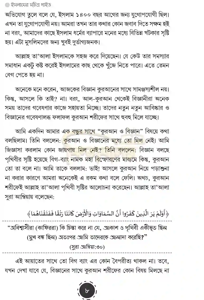 এই গ্রন্থটি বিশেষভাবে ইসলামের বৈজ্ঞানিক অলৌকিকতাগুলোকে যুক্তি ও প্রমাণসহ এমন নিপুণভাবে বর্ণনা করেছে, যা যেকোনো সংশয়ী মনকে প্রশান্তি এনে দেবে। শুধু তাই নয়, ব্যক্তি ও সমাজ সম্পর্কে ইসলামের ভারসাম্যপূর্ণ দৃষ্টিভঙ্গি, এবং ইসলামী শরী‘আত অনুসরণকারী একজন মুসলিম কীভাবে ইহকাল ও পরকালে অগণিত উপকার অর্জন করতে পারে, তাও এতে সুন্দরভাবে আলোকপাত করা হয়েছে। এটি একটি এমন গ্রন্থ, যা অমুসলিমদের প্রতি ইসলামের দাওয়াতের ক্ষেত্রে এক নতুন দিগন্ত উন্মোচন করেছে।