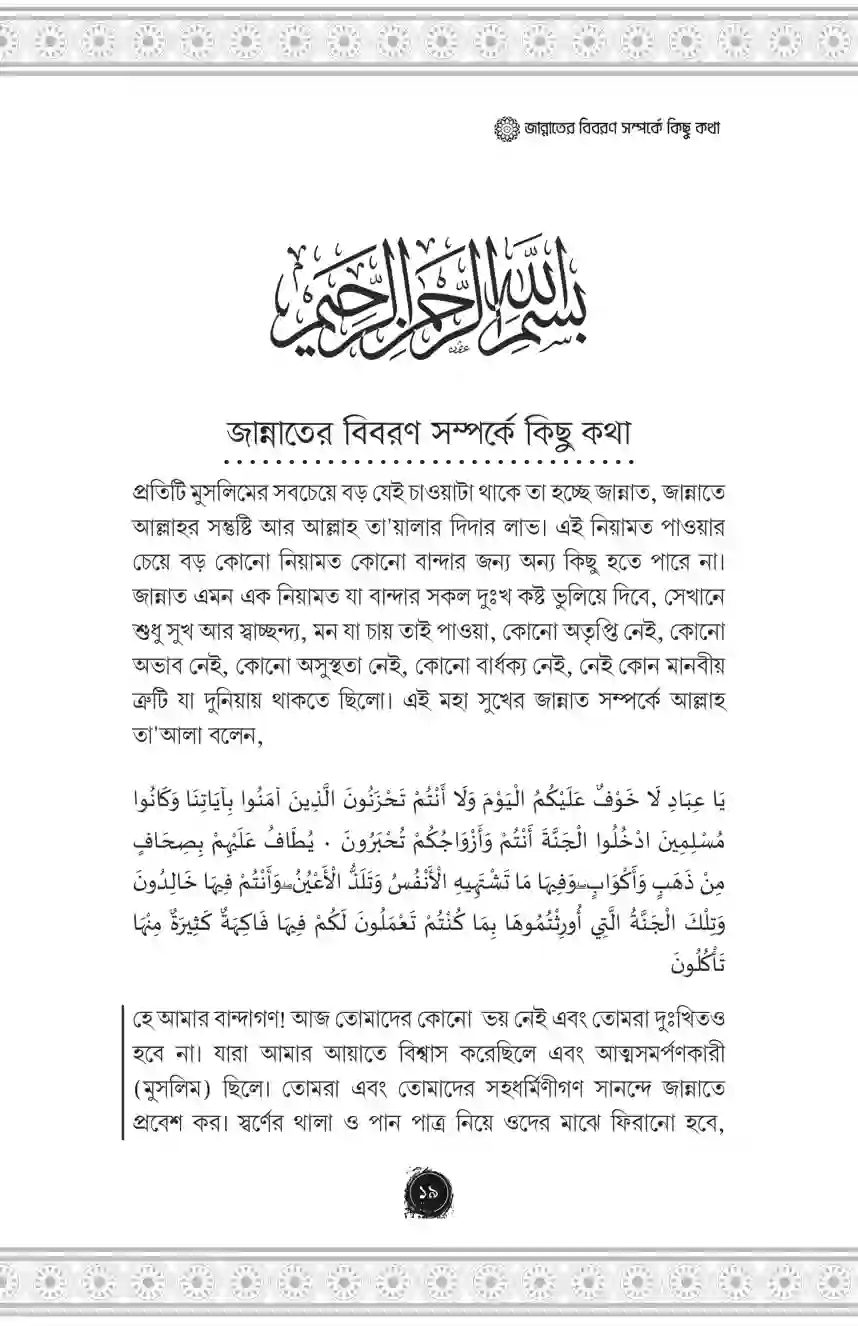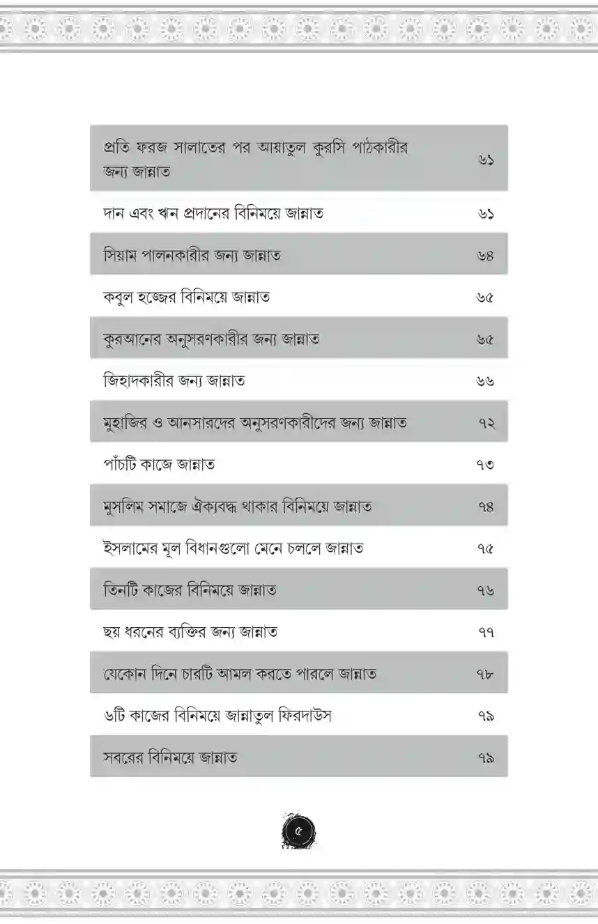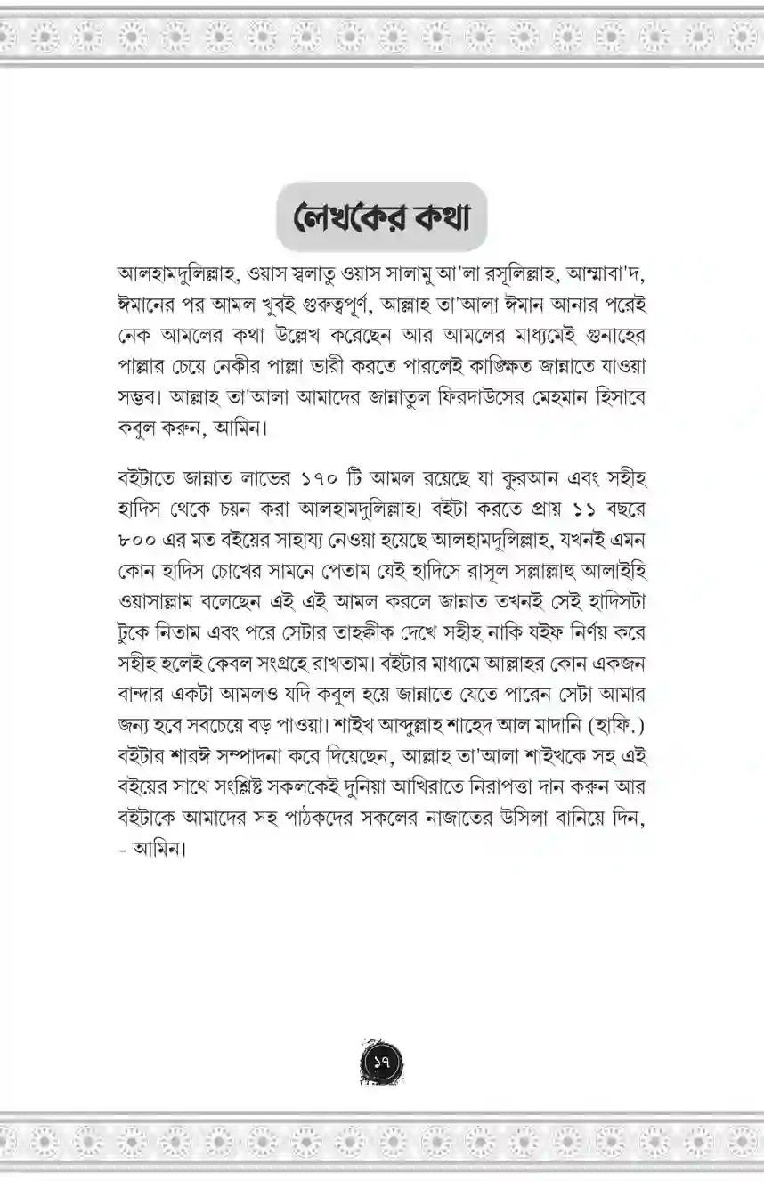 যারা জান্নাতে যেতে চায় তাদের আমল কেমন হওয়া উচিত, কোন কাজগুলো করলে তারা সহজেই জান্নাতে যেতে পারবে এমন অসংখ্য হাদিস এই বইতে রয়েছে। আমল কারীদের জন্য এটা অন্যতম সেরা একটা বই হবে ইনশাআল্লাহ।