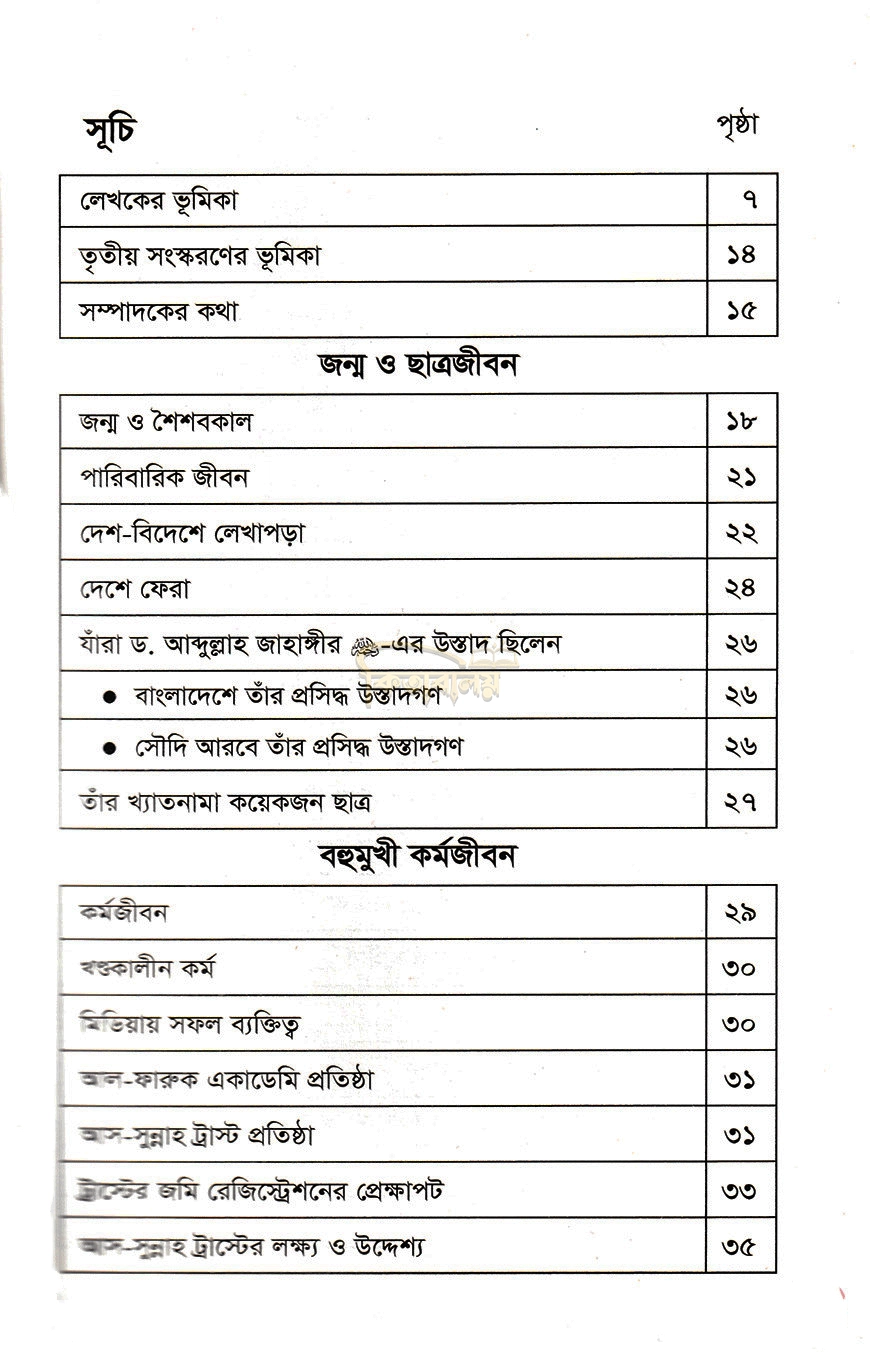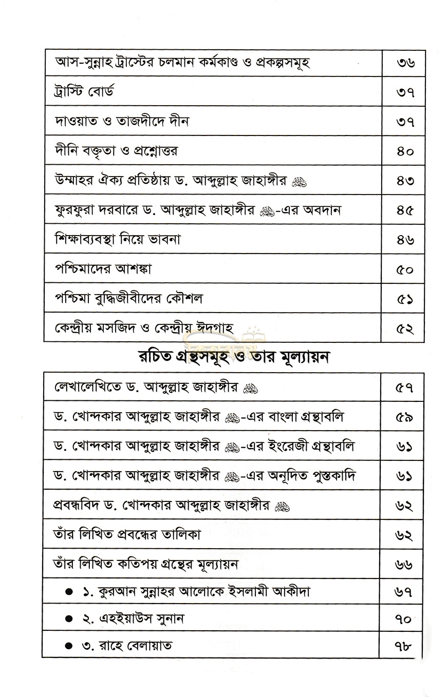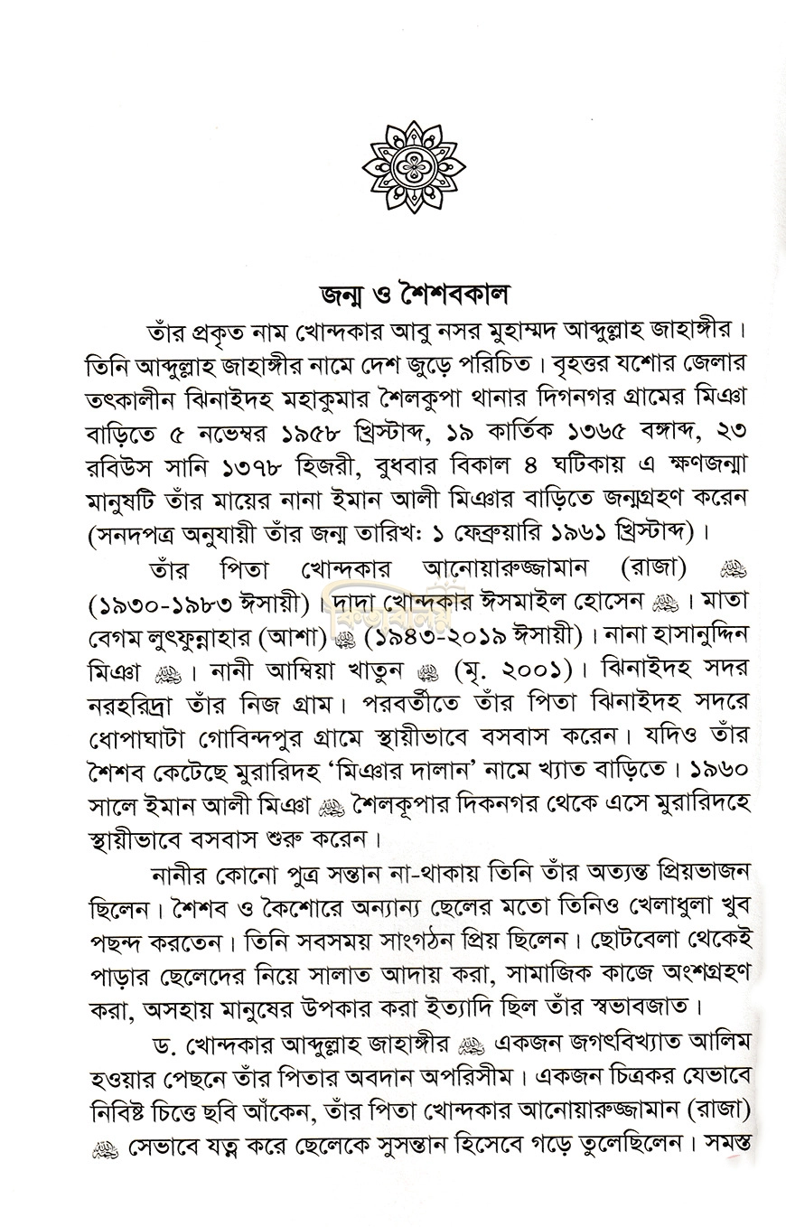 উম্মাহর দরদি অভিভাবক মুহিউস সুন্নাহ ড. খোন্দকার আব্দুল্লাহ রাহ.-এর ইন্তিকালের পাঁচ বছর পর তাঁর এই জীবনী গ্রন্থটি লিখেছেন আবাসে–প্রবাসে তাঁর দীর্ঘদিনের সান্নিধ্যধন্য আস সুন্নাহ ট্রাস্টের সেক্রেটারি জনাব আব্দুর রহমান। আমি তাঁকে অনেক বার অনুরোধ করেছি, যারা দীর্ঘদিন স্যার রাহ.কে খুব নিকট থেকে দেখেছেন আপনি তাদের অন্যতম। তাঁর সম্পর্কে আপনার স্মৃতিগুলো, আপনার বলবার কথাগুলো দুই মলাটের মাঝে সংরক্ষণ করুন। কেননা আমাদের কার কখন দুনিয়ার সফর শেষ হয়ে যায় কারোরই জানা নেই। তিনি বারবার তাঁর লেখনশক্তির দুর্বলতার কথা বলেছেন। তবে আমার কথা ছিল, এক্ষেত্রে ভাষার চেয়ে বেশি গুরুত্বপূর্ণ হচ্ছে তথ্যের বিশুদ্ধতা। আপনি কথা না বললে অনেক গুরুত্বপূর্ণ ও উপকারী তথ্য হারিয়ে যাবে, অজানা থেকে যাবে, যা পরবর্তীতে স্যার রাহ.-এর পূর্ণাঙ্গ জীবনী রচনায় মূল উৎস হিসাবে ব্যবহৃত হবে। মুসলিম উম্মাহর বর্তমান দুর্দিনে আব্দুল্লাহ জাহাঙ্গীর রাহ.-এর জীবন চর্চা এবং তাঁর চিন্তা ও কর্মপদ্ধতির আলোচনা অনেক দরকারী ও উপকারী যা কুয়াশাভরা সন্ধ্যায় আমাদের চলার পথে আলো ফেলবে। এদেশের ঘরানাবিভক্ত ধর্মীয় সমাজে কোনো আলিম যদি নিজ ঘরানার বিষয়গুলোকে বিভিন্ন যুক্তিও উক্তির মাধ্যমে প্রমাণ করেন আর অন্যদেরকে দরাজ কণ্ঠে খ–ন করেন তবে তিনি রাতারাতি নিজ ঘরানায় জনপ্রিয়তা লাভ করেন। এদেশের জনপ্রিয় আলিম বলতে সাধারণত এ ধরনের জনপ্রিয় আলিমকেই বোঝায়। সম্ভবত ড. আব্দুল্লাহ জাহাঙ্গীর রাহ. ছিলেন এক্ষেত্রে একমাত্র ব্যতিক্রম; যিনি কোনো ঘরানায় প্রবেশ না করেও, শুধু বিশুদ্ধ সুন্নাহ আর সমগ্র উম্মাহর পক্ষে থেকেও আকাশচুম্বি জনপ্রিয়তা লাভ করেছিলেন। এখন হয়ত আমরা সকলেই বুঝতে পারছি, বিশ্বের তাবৎ কুফফার শক্তি আর আদমশুমারিতে মুসলিম হিসাবে অন্তর্ভুক্ত যিন্দীক মুলহিদ শ্রেণি যখন ইসলাম ও মুসলিম উম্মাহর বিরুদ্ধে ঐক্যবদ্ধ, আর উম্মাহর অধিকাংশ সদস্য ইসলাম ও উম্মাহর স্বার্থের ব্যাপারে, এমনকি নিজের আখিরাতের ব্যাপারেও সম্পূর্ণ উদাসীন তখন আমাদের ধার্মিক শ্রেণির ঘরানাগত স্বার্থ ও স্বাতন্ত্র্য রক্ষার চেয়ে উম্মাহর অস্তিত্ব রক্ষার জিহাদে ঐক্যবদ্ধ হওয়া কতটা জরুরি। আর এক্ষেত্রে স্যার রাহ.-এর চিন্তা ও কর্মপদ্ধতির চর্চা অতিশয় প্রাসঙ্গিক। তিনিই দেখিয়েছেন, কীভাবে বিভক্তির পথে না গিয়ে, কেবল সুন্নাহ ও উম্মাহর পক্ষে থেকেও উম্মাহর হৃদয়জয় করে এক প্লাটফর্মে আনা যায়। জনাব আব্দুর রহমান সাহেব (হাফিযাহুল্লাহ) স্যার রাহ.-এর জীবন চর্চার জানালাটা খুলে দিলেন। এখন অনেকেই হয়ত দরজা খুলে বাইরে আসবেন; তাঁর জীবন চর্চা ব্যাপক আকারেশুরু হবে। পথিকৃৎ হিসাবে এই গ্রন্থের লেখক উম্মাহর শুকরিয়া ও দুআর হকদার হয়ে গেলেন। আমরা তাঁর 