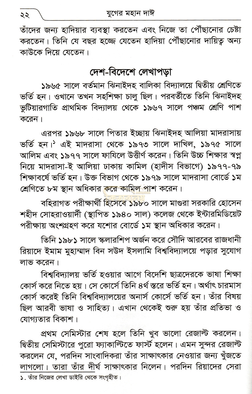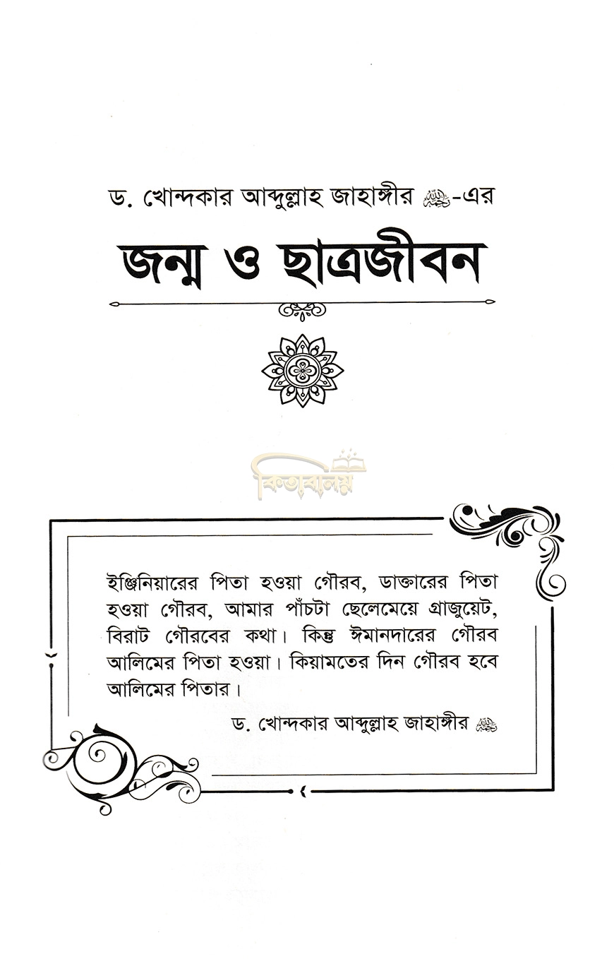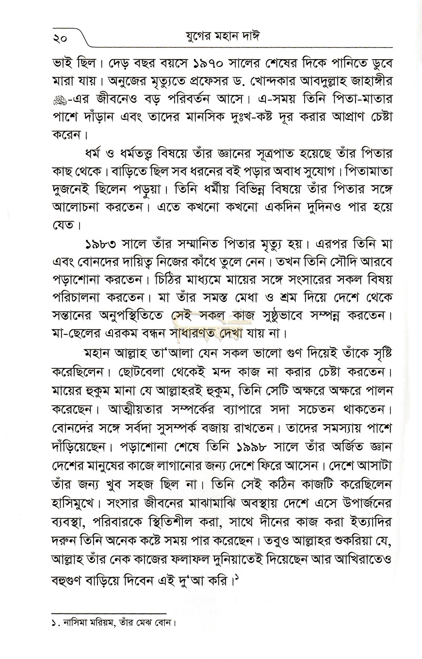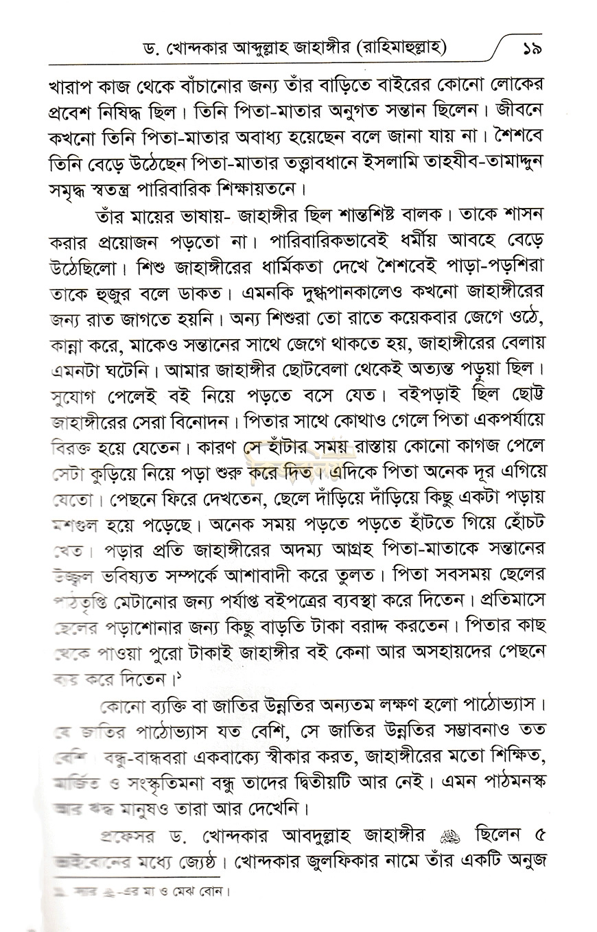 উম্মাহর দরদি অভিভাবক মুহিউস সুন্নাহ ড. খোন্দকার আব্দুল্লাহ রাহ.-এর ইন্তিকালের পাঁচ বছর পর তাঁর এই জীবনী গ্রন্থটি লিখেছেন আবাসে–প্রবাসে তাঁর দীর্ঘদিনের সান্নিধ্যধন্য আস সুন্নাহ ট্রাস্টের সেক্রেটারি জনাব আব্দুর রহমান। আমি তাঁকে অনেক বার অনুরোধ করেছি, যারা দীর্ঘদিন স্যার রাহ.কে খুব নিকট থেকে দেখেছেন আপনি তাদের অন্যতম। তাঁর সম্পর্কে আপনার স্মৃতিগুলো, আপনার বলবার কথাগুলো দুই মলাটের মাঝে সংরক্ষণ করুন। কেননা আমাদের কার কখন দুনিয়ার সফর শেষ হয়ে যায় কারোরই জানা নেই। তিনি বারবার তাঁর লেখনশক্তির দুর্বলতার কথা বলেছেন। তবে আমার কথা ছিল, এক্ষেত্রে ভাষার চেয়ে বেশি গুরুত্বপূর্ণ হচ্ছে তথ্যের বিশুদ্ধতা। আপনি কথা না বললে অনেক গুরুত্বপূর্ণ ও উপকারী তথ্য হারিয়ে যাবে, অজানা থেকে যাবে, যা পরবর্তীতে স্যার রাহ.-এর পূর্ণাঙ্গ জীবনী রচনায় মূল উৎস হিসাবে ব্যবহৃত হবে। মুসলিম উম্মাহর বর্তমান দুর্দিনে আব্দুল্লাহ জাহাঙ্গীর রাহ.-এর জীবন চর্চা এবং তাঁর চিন্তা ও কর্মপদ্ধতির আলোচনা অনেক দরকারী ও উপকারী যা কুয়াশাভরা সন্ধ্যায় আমাদের চলার পথে আলো ফেলবে। এদেশের ঘরানাবিভক্ত ধর্মীয় সমাজে কোনো আলিম যদি নিজ ঘরানার বিষয়গুলোকে বিভিন্ন যুক্তিও উক্তির মাধ্যমে প্রমাণ করেন আর অন্যদেরকে দরাজ কণ্ঠে খ–ন করেন তবে তিনি রাতারাতি নিজ ঘরানায় জনপ্রিয়তা লাভ করেন। এদেশের জনপ্রিয় আলিম বলতে সাধারণত এ ধরনের জনপ্রিয় আলিমকেই বোঝায়। সম্ভবত ড. আব্দুল্লাহ জাহাঙ্গীর রাহ. ছিলেন এক্ষেত্রে একমাত্র ব্যতিক্রম; যিনি কোনো ঘরানায় প্রবেশ না করেও, শুধু বিশুদ্ধ সুন্নাহ আর সমগ্র উম্মাহর পক্ষে থেকেও আকাশচুম্বি জনপ্রিয়তা লাভ করেছিলেন। এখন হয়ত আমরা সকলেই বুঝতে পারছি, বিশ্বের তাবৎ কুফফার শক্তি আর আদমশুমারিতে মুসলিম হিসাবে অন্তর্ভুক্ত যিন্দীক মুলহিদ শ্রেণি যখন ইসলাম ও মুসলিম উম্মাহর বিরুদ্ধে ঐক্যবদ্ধ, আর উম্মাহর অধিকাংশ সদস্য ইসলাম ও উম্মাহর স্বার্থের ব্যাপারে, এমনকি নিজের আখিরাতের ব্যাপারেও সম্পূর্ণ উদাসীন তখন আমাদের ধার্মিক শ্রেণির ঘরানাগত স্বার্থ ও স্বাতন্ত্র্য রক্ষার চেয়ে উম্মাহর অস্তিত্ব রক্ষার জিহাদে ঐক্যবদ্ধ হওয়া কতটা জরুরি। আর এক্ষেত্রে স্যার রাহ.-এর চিন্তা ও কর্মপদ্ধতির চর্চা অতিশয় প্রাসঙ্গিক। তিনিই দেখিয়েছেন, কীভাবে বিভক্তির পথে না গিয়ে, কেবল সুন্নাহ ও উম্মাহর পক্ষে থেকেও উম্মাহর হৃদয়জয় করে এক প্লাটফর্মে আনা যায়। জনাব আব্দুর রহমান সাহেব (হাফিযাহুল্লাহ) স্যার রাহ.-এর জীবন চর্চার জানালাটা খুলে দিলেন। এখন অনেকেই হয়ত দরজা খুলে বাইরে আসবেন; তাঁর জীবন চর্চা ব্যাপক আকারেশুরু হবে। পথিকৃৎ হিসাবে এই গ্রন্থের লেখক উম্মাহর শুকরিয়া ও দুআর হকদার হয়ে গেলেন। আমরা তাঁর 