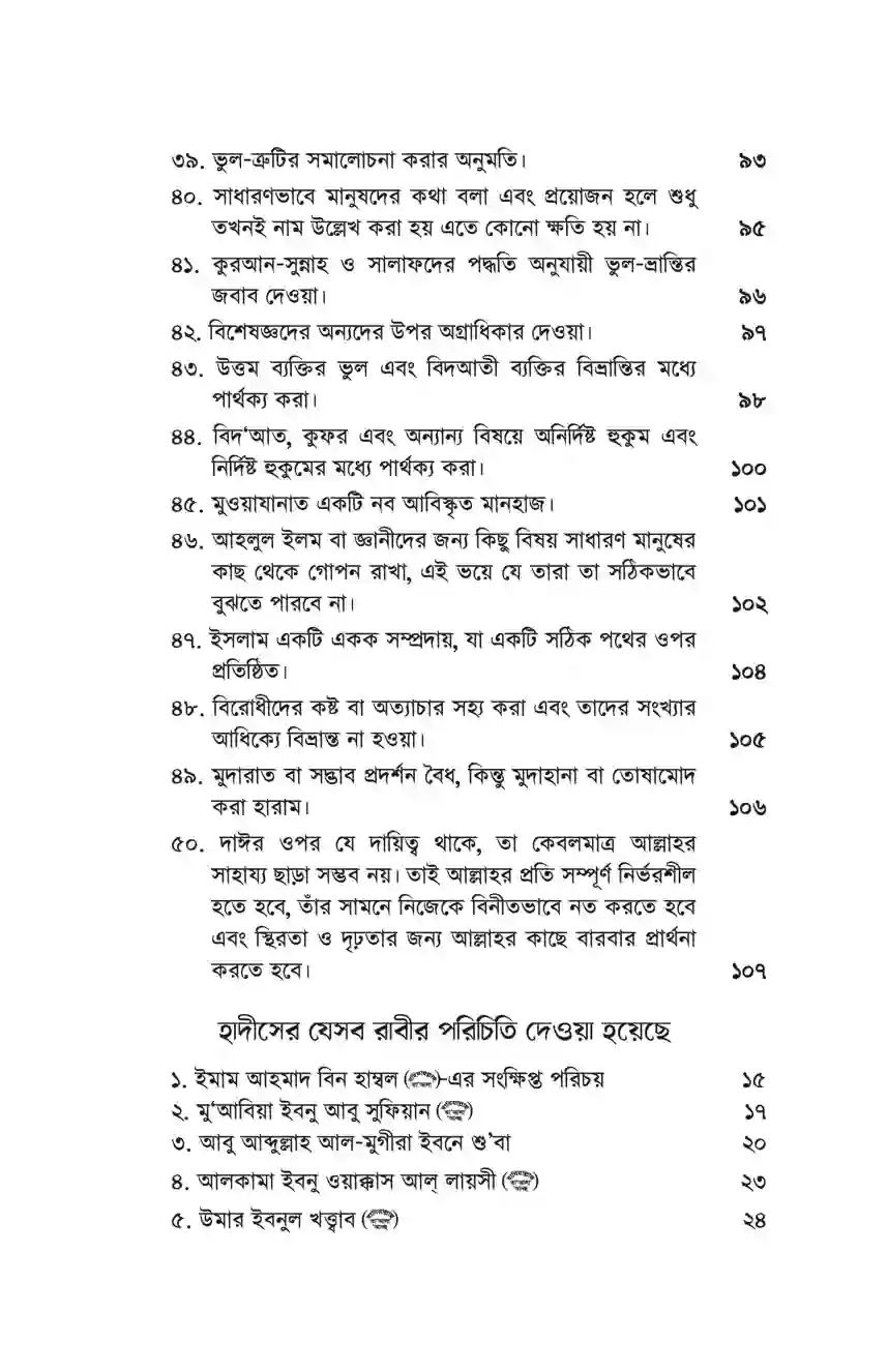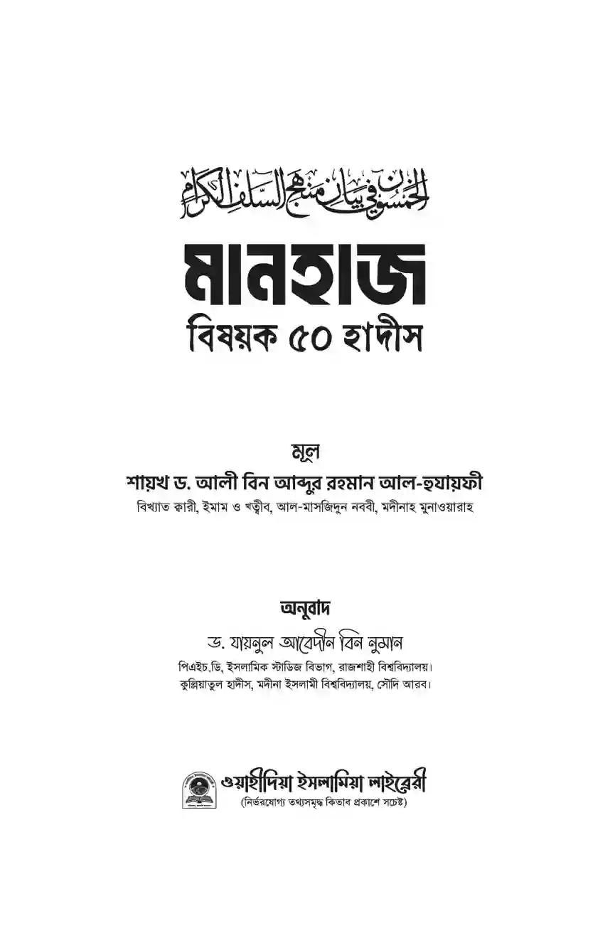 মুমিনের মানহাজ গ্রহণের মূল ও প্রধানতম উৎস দুটি: এক. কুরআনুল কারীম এবং দুই. হাদীসে নববী। আমাদের সম্মানিত সালাফগণ এই দুই মহান উৎসকে ভিত্তি করে সালাফী মানহাজের সংজ্ঞা নির্ধারণ করেছেন। অতএব, সরাসরি হাদীস থেকেই সালাফী মানহাজের মূলনীতিগুলো জানা সর্বোত্তম উপায়গুলোর একটি।এই গ্রন্থটি সেই উত্তম প্রয়াসেরই একটি অংশ, যা পাঠককে হাদীসের আলোকে মানহাজ শেখাবে এবং এর মূলনীতিগুলো ব্যাখ্যা করবে। গ্রন্থটির লেখক হলেন আমাদের সম্মানিত শায়খ, মসজিদে নববীর ইমাম ও খতিব, বিশ্ববন্দিত ক্বারী ড. আলী বিন আব্দুর রহমান আল-হুযায়ফী (হাফিজাহুল্লাহ)। মূল আরবি গ্রন্থের নাম الخمسون في بيان منهج السلف الكرام