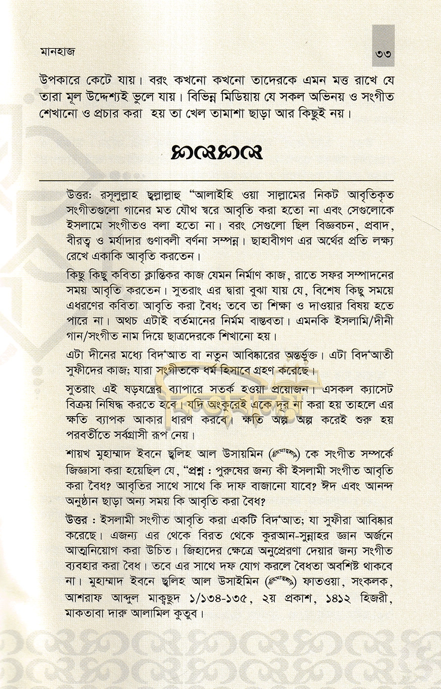 মানহাজ আক্বীদাহর তুলনায় ব্যাপক বিষয়। মানহাজ আক্বীদাহর ক্ষেত্রেও হতে পারে এবং আচার ব্যবহার, আখলাক্ব-চরিত্র, লেনদেন ইত্যাদি মুসলিম জীবনের প্রত্যেক দিক নিয়েই হতে পারে। মুসলিম যে পথে চলে থাকে তাকেই মানহাজ বলা হয়। আক্বীদা, মানহাজ ও আমল একই পথে হতে হবে। সবই ঠিক হতে হবে। কারো আক্বীদা ঠিক নেই, কারো মানহাজ ঠিক নেই, আবার কারো আমল ঠিক নেই।