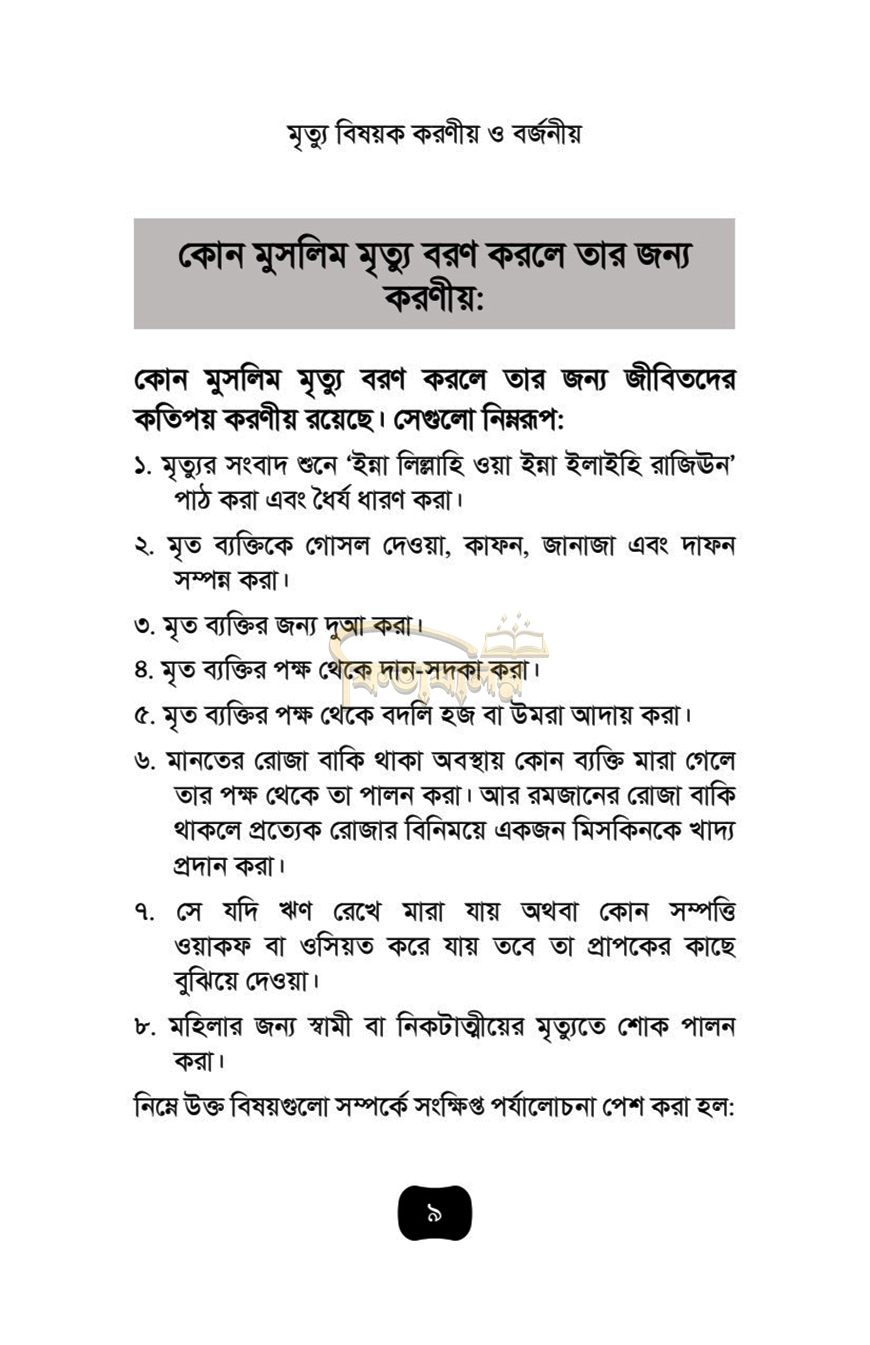 মৃত্যু বিষয়ক করণীয় ও বর্জনীয়