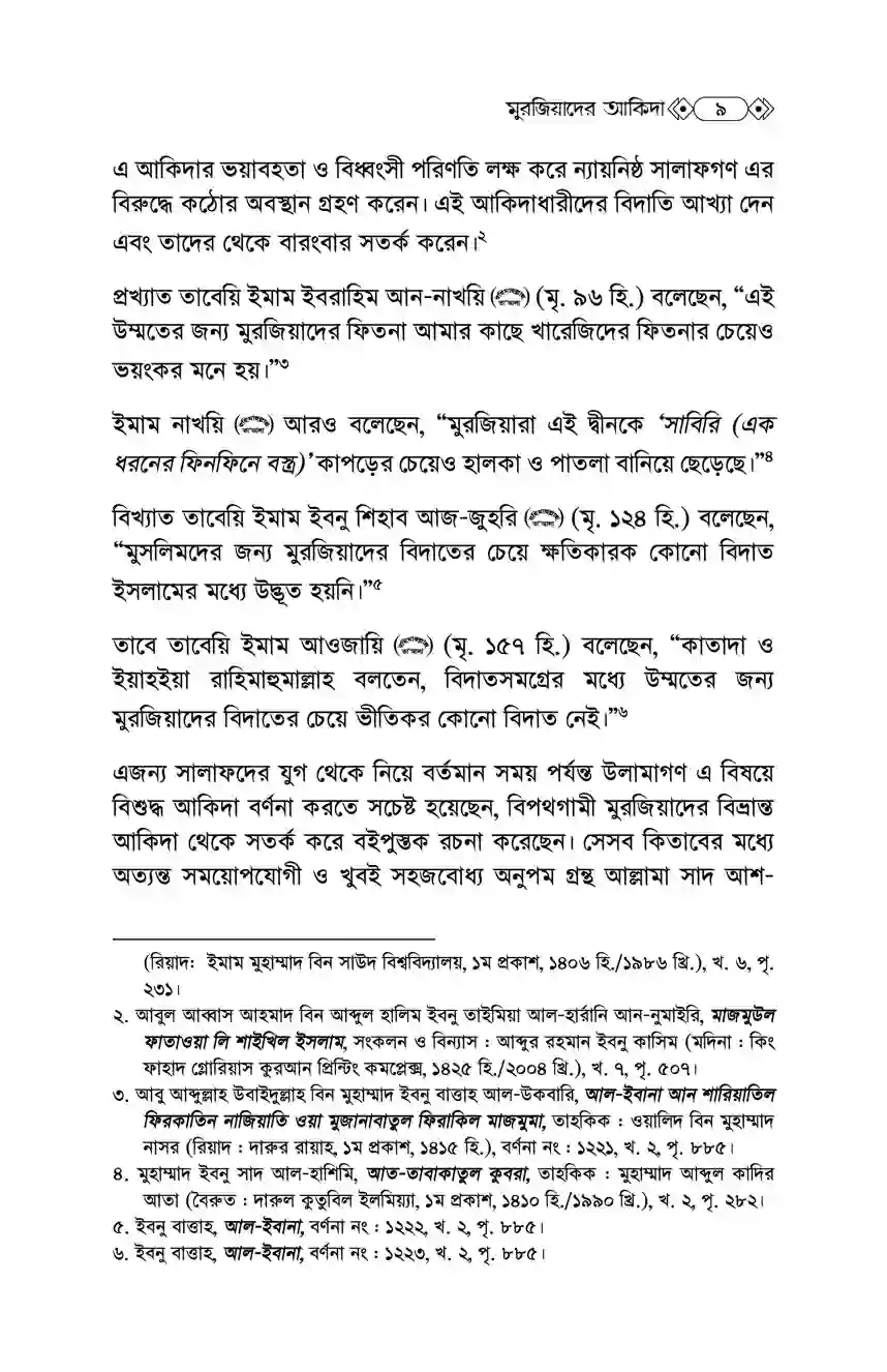 বিদাতসমগ্রের মধ্যে উম্মতের জন্য মুরজিয়াদের বিদাতের চেয়ে ভীতিকর কোনো বিদাত নেই।