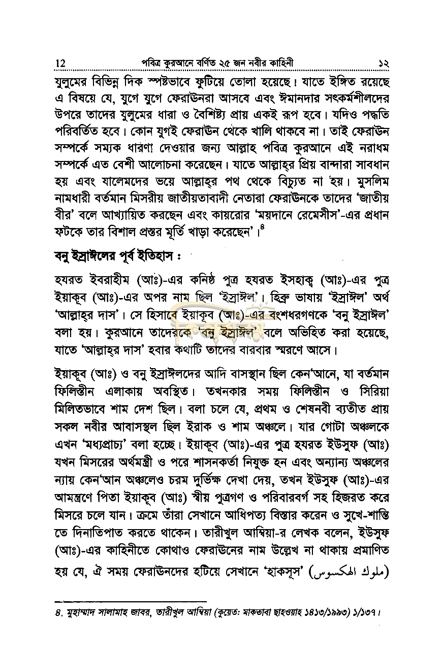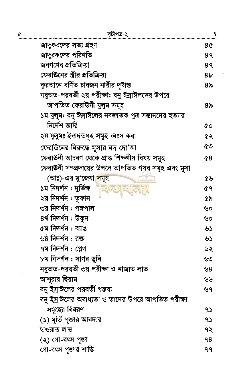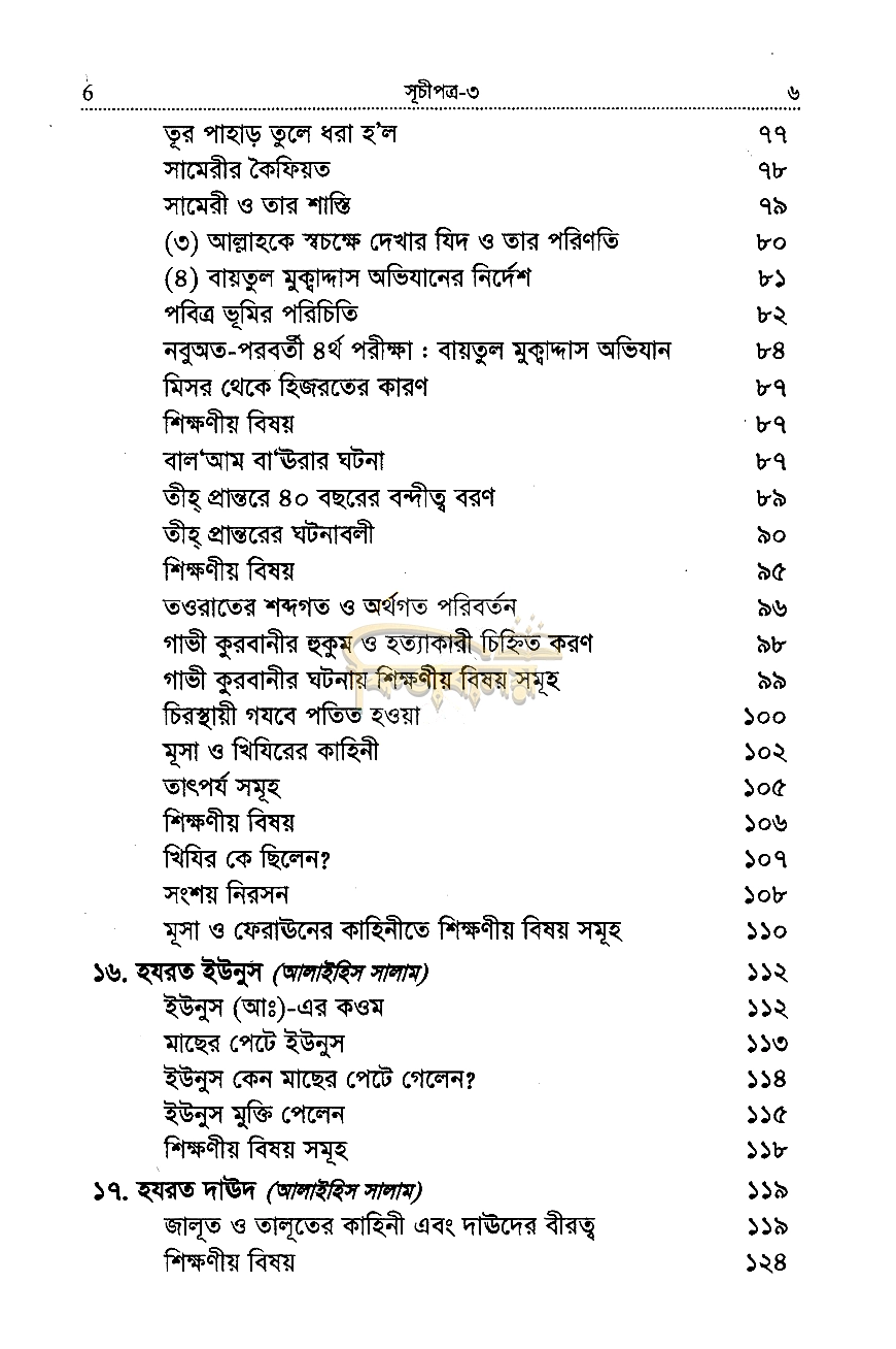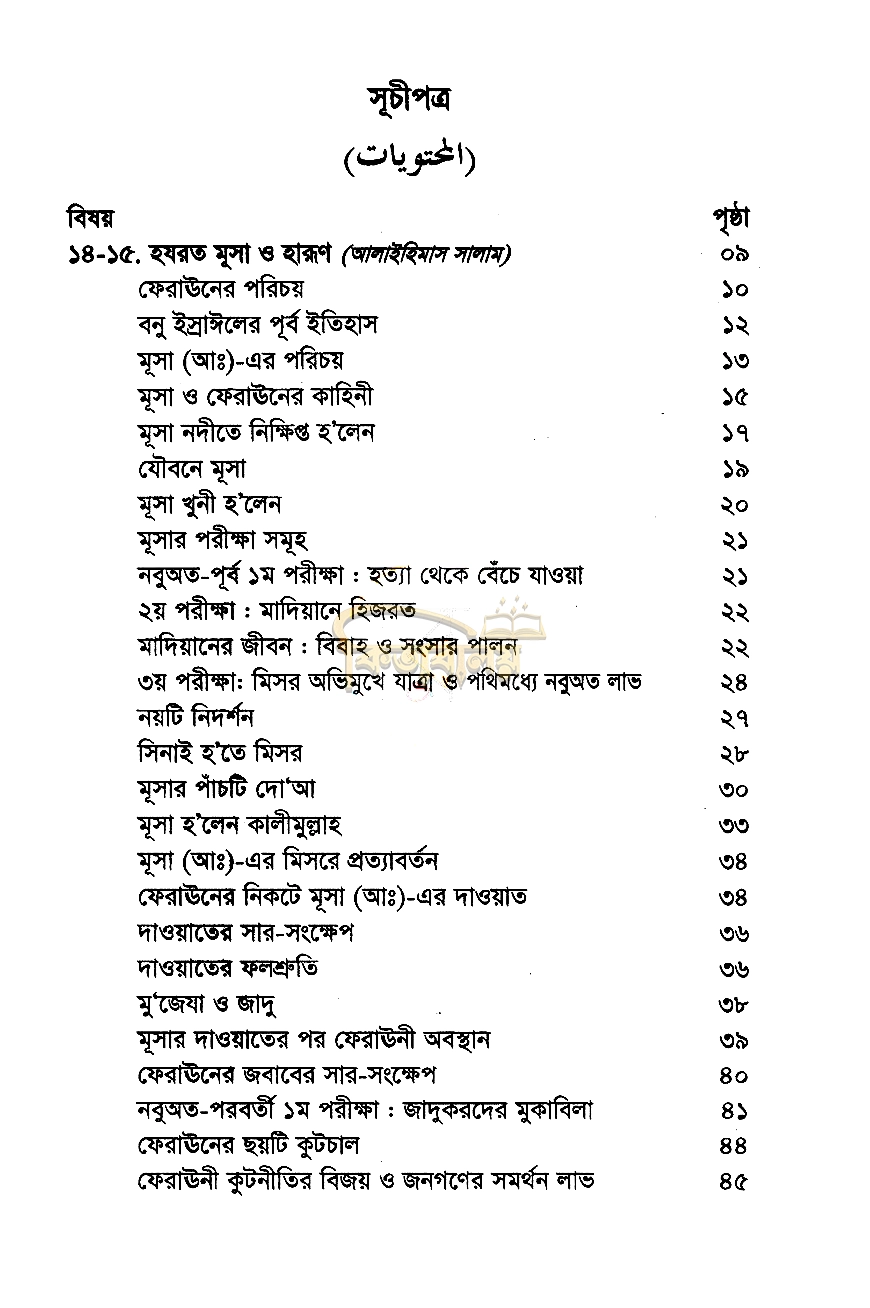 “নবীদের কাহিনী-২” বইয়ের সূচীপত্র