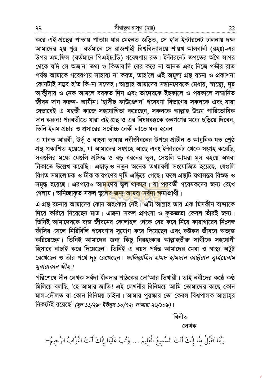 বাংলা ভাষায় এটার মতো এতো সুন্দর সীরাত আর একটিও নেই। এই সীরাতটি মদীনা ইসলামী বিশ্ববিদ্যালয়ে সীরাতের উপর রেফারেন্স বুক হিসেবে রাখা হয়েছে। বইটি আসলেই অনেক তথ্যবহুল।
