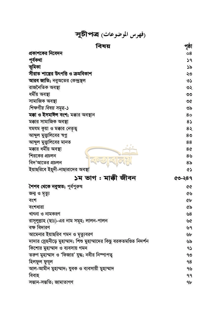 বইটিতে রাসুলুল্লাহ সাঃ এর জীবন কে প্রধানত তিনটি ভাগে বিভক্ত করা হয়েছে।