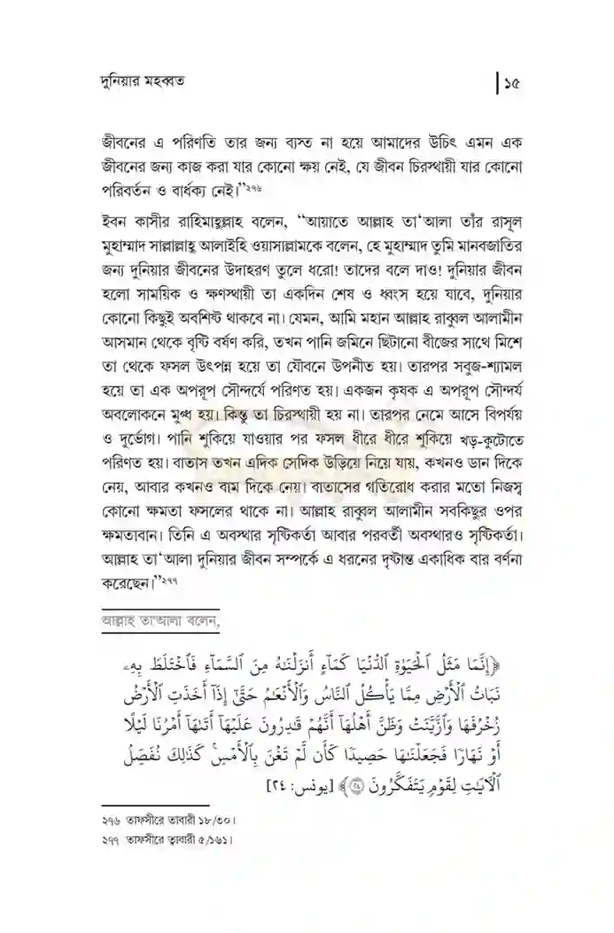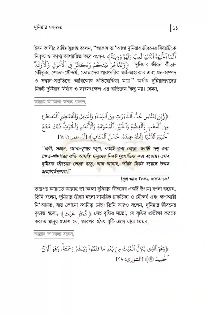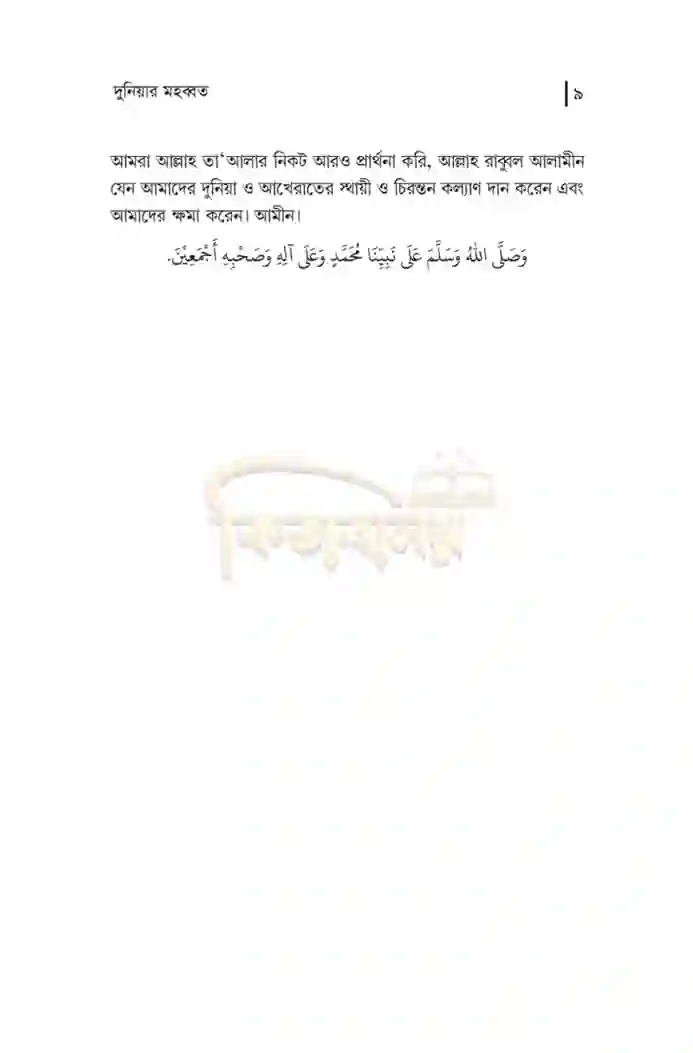 ৫। দুনিয়ার মহব্বত
