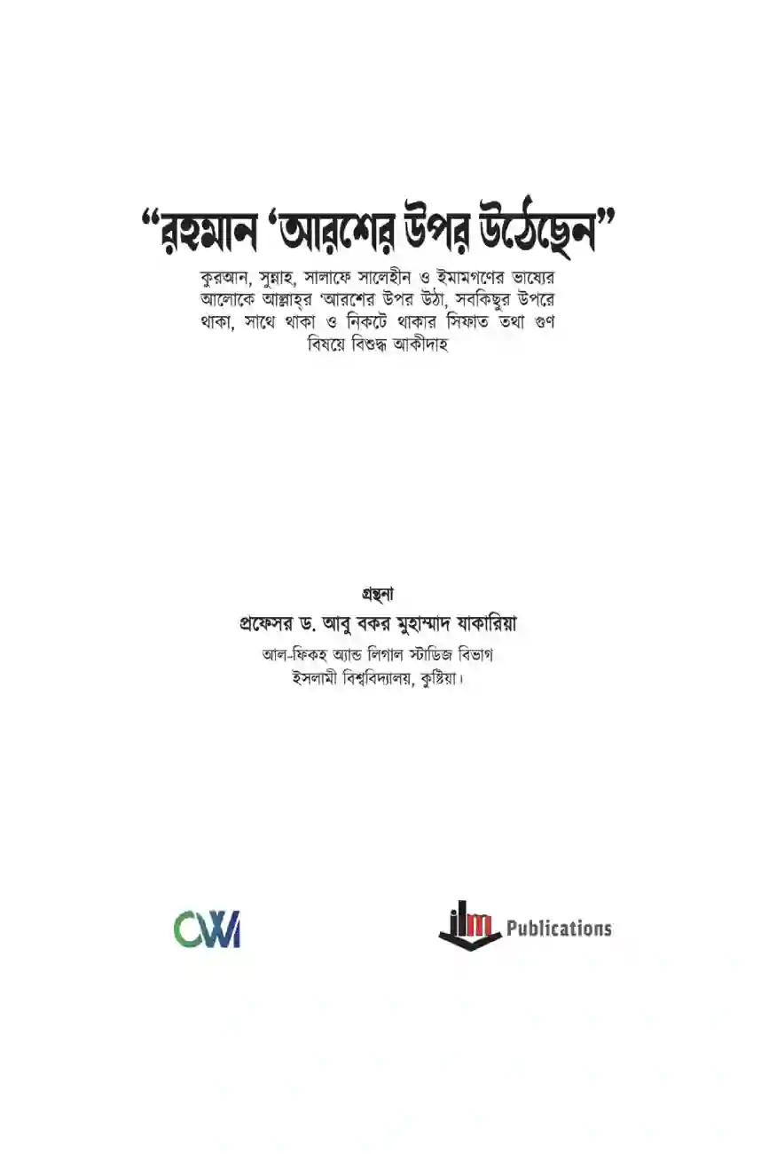 বক্ষ্যমাণ গ্রন্থে আল্লাহর আরশের উপর উঠা নিয়ে কুরআন সুন্নাহ এবং সালাফদের দৃষ্টিকোণ থেকে বিস্তারিত আলোচনা করা হয়েছে।