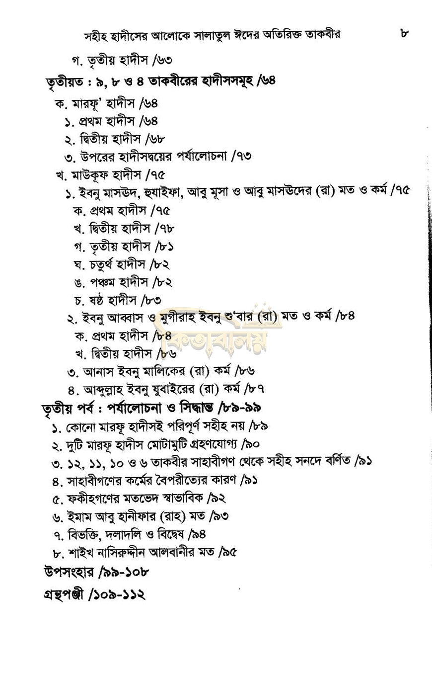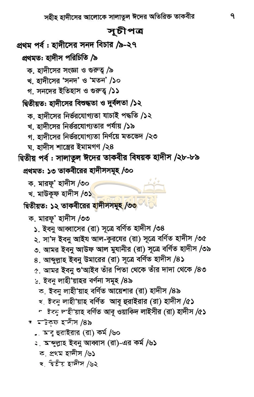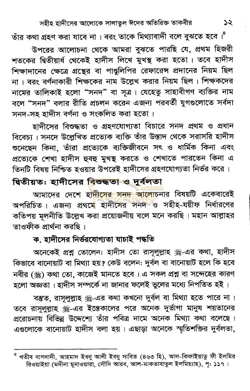 আমার জ্ঞানের পরিধি খুবই সীমিত। কিন্তু পেশাগত কারণে আমি যেহেতু বিশ্ববিদ্যালয়ে “হাদীস” বিভাগে শিক্ষকতা করি এবং সমাজের অনেকে আমাকে “আলিম” বলে মনে করেন, সেহেতু আমার ছাত্ররা এবং সমাজের বিভিন্ন স্তরের দ্বীনদার মুসলিম বিভিন্ন সময়ে সালাতুল ঈদের তাকবীরের বিষয়ে আমাকে বারংবার প্রশ্ন করেছেন। কেউ প্রশ্ন করেছেন: আপনারা সালাতুল ঈদের ৬ তাকবীর কোথায় পেয়েছেন?…..বিস্তারিত জানতে বইটি পড়ুন
