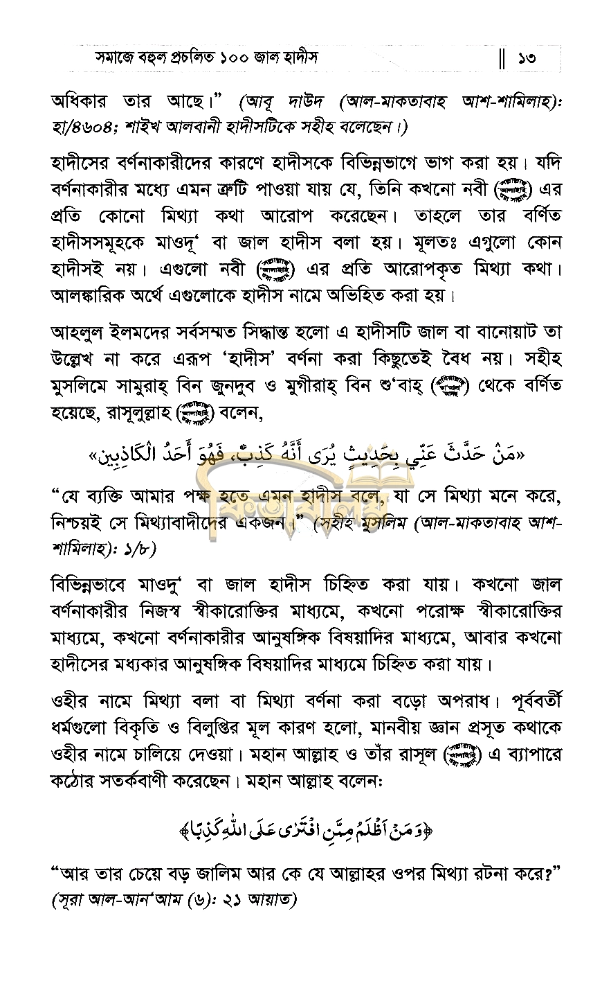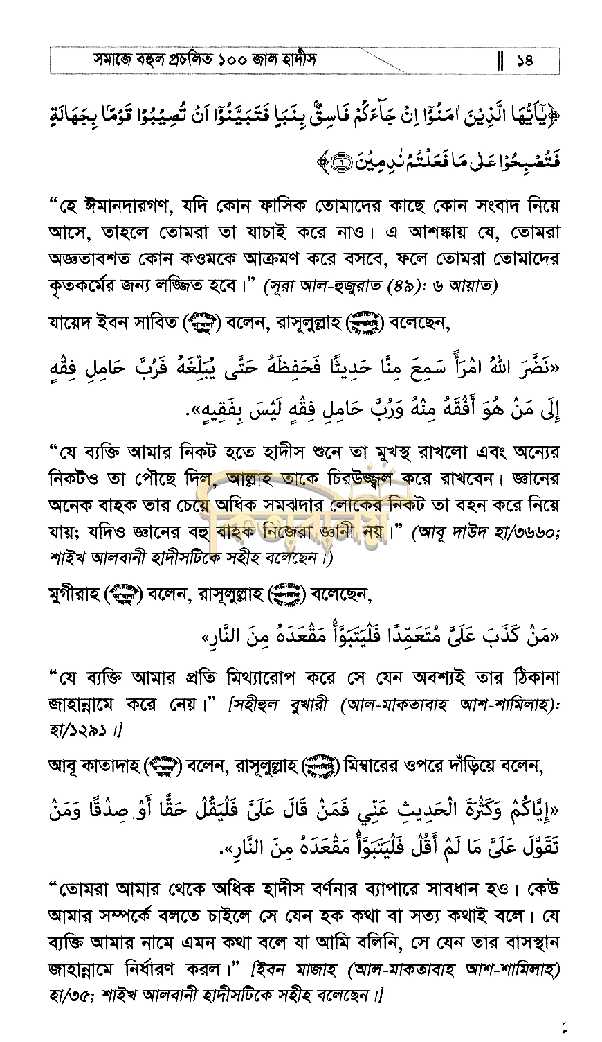 সমাজে বহুল প্রচলিত ১০০ জাল হাদীস