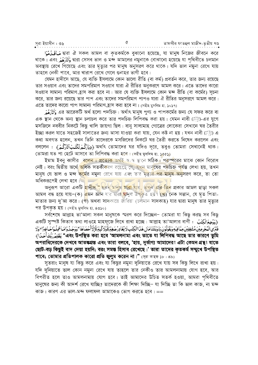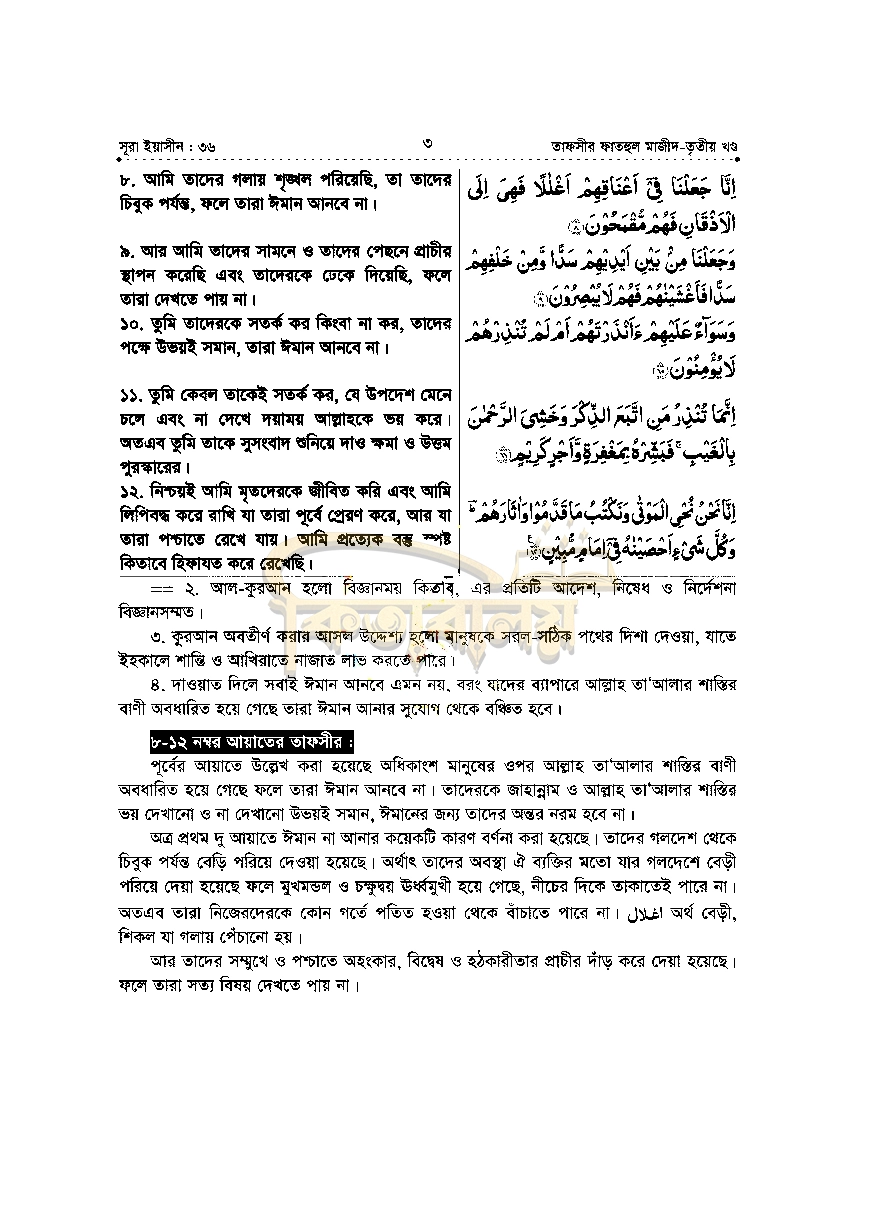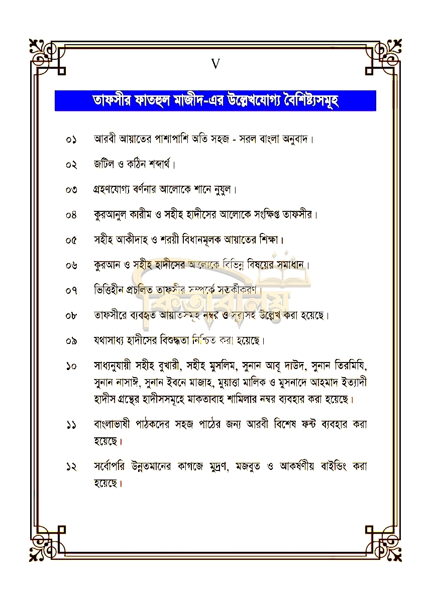 ৮। তাফসীরে ব্যবহৃত আয়াতসমূহ নম্বর ও সূরাসহ উল্লেখ করা হয়েছে।