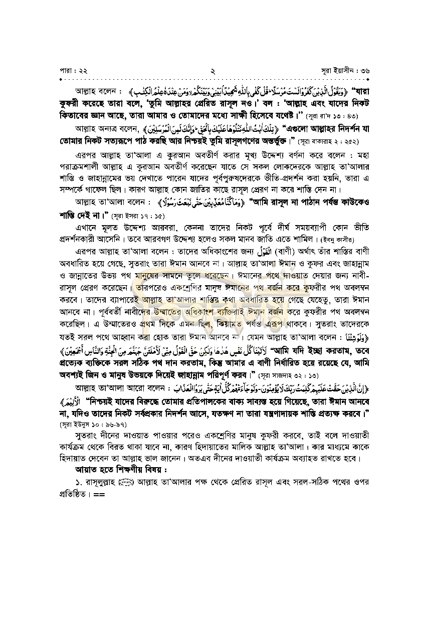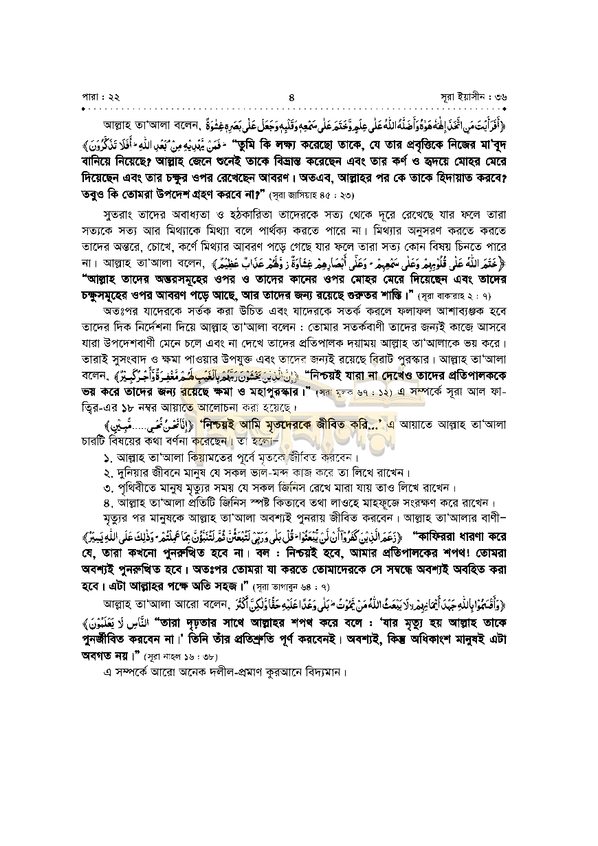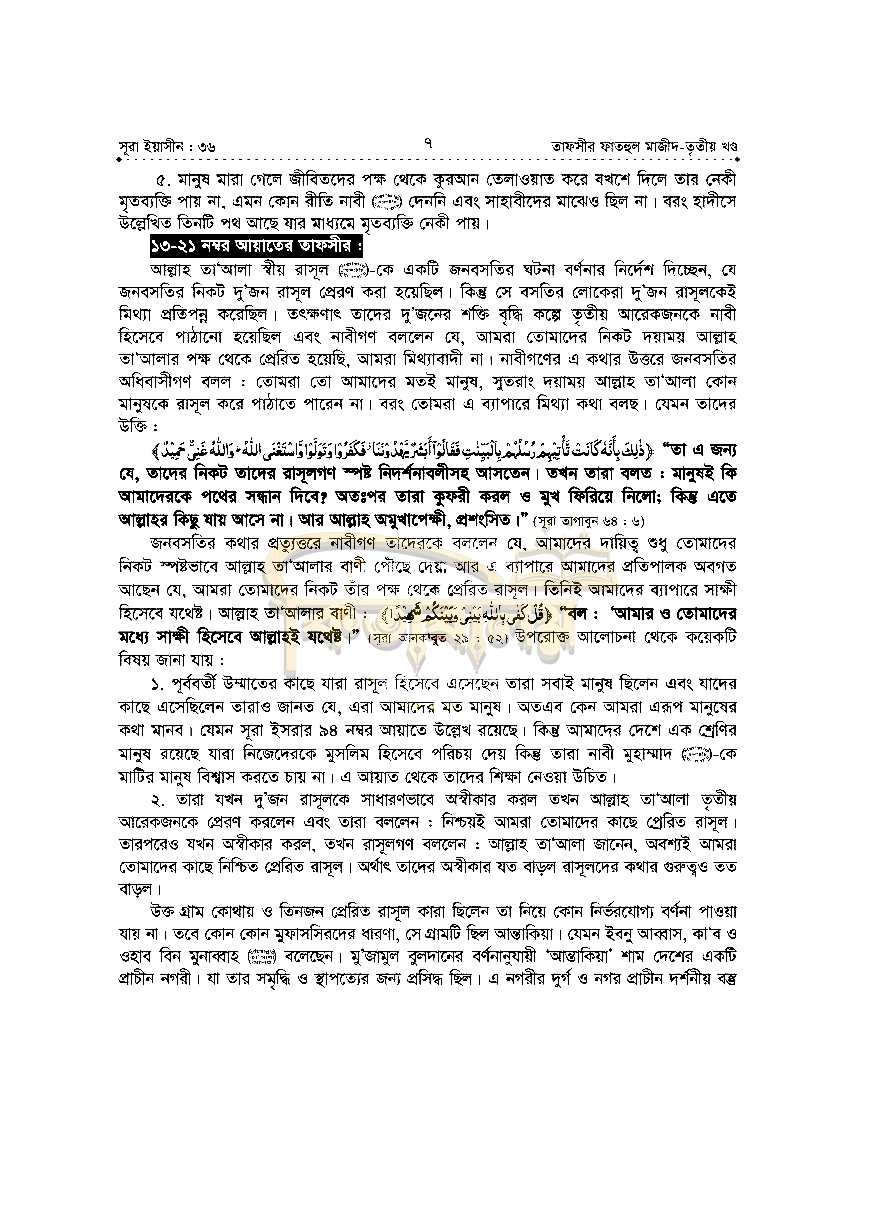 ৮। তাফসীরে ব্যবহৃত আয়াতসমূহ নম্বর ও সূরাসহ উল্লেখ করা হয়েছে।