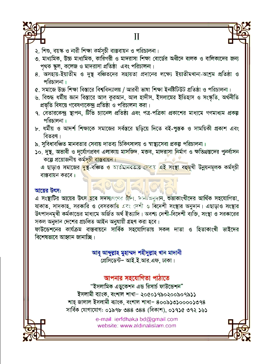 ১১। বাংলাভাষী পাঠকদের সহজ পাঠের জন্য আরবী বিশেষ ফন্ট ব্যবহার করা হয়েছে।
