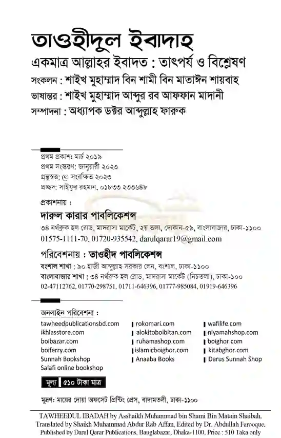 Be the first to review “তাওহীদুল ইবাদাহ একমাত্র আল্লাহর ইবাদত তাৎপর্য ও বিশ্লেষণ( Tawhidul Ibadah Ekmatro Allahr Ibadat Tatporjo O Bishleshon )”