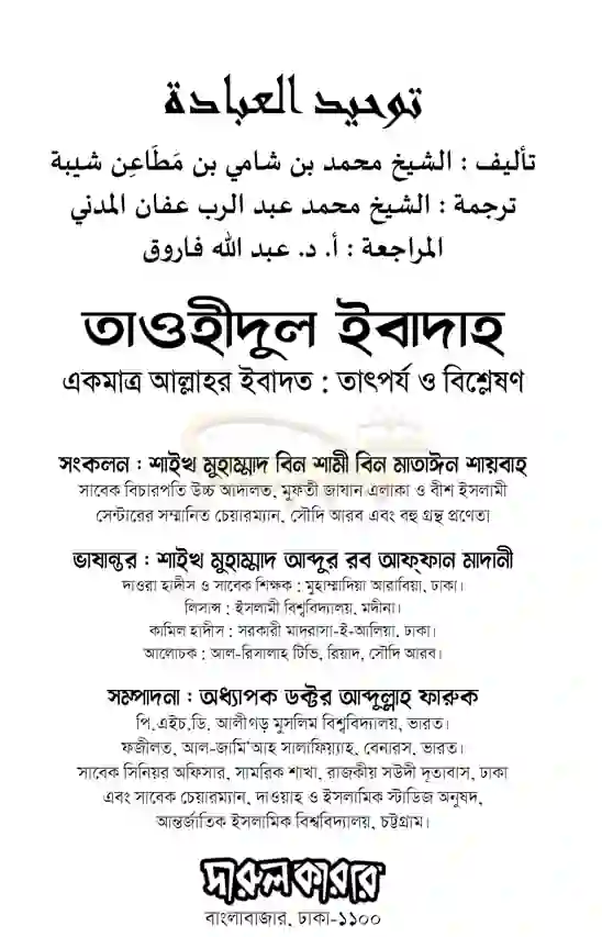 কিতাবুত তাওহীদ ও এর ব্যাখ্যা (Kitabut Tawheed O Er Byakkha )