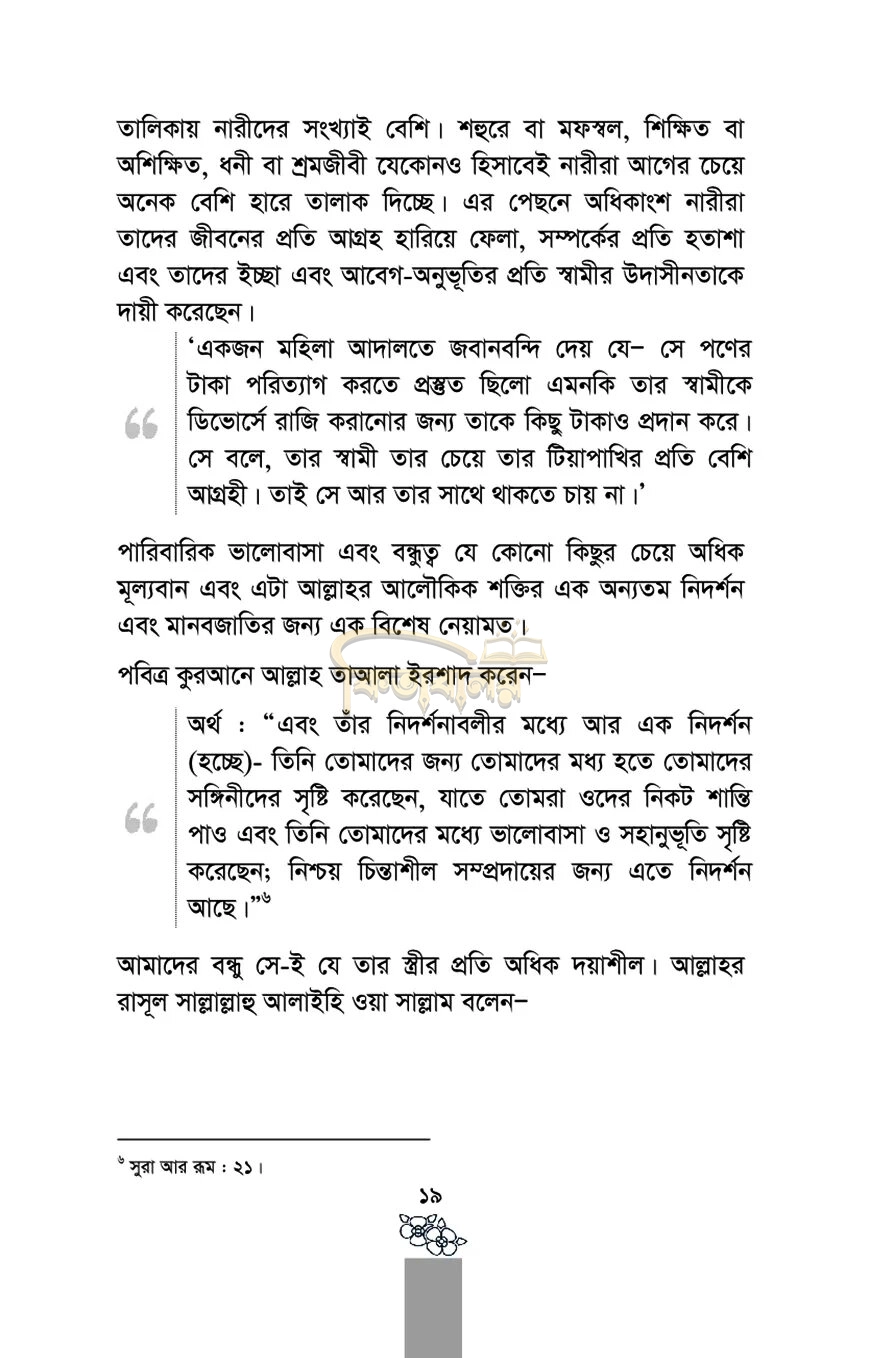 ২০২০ সালের একটি জরিপ অনুযায়ী শুধু ঢাকা শহরে প্রতিদিন গড়ে ৩৯ টি ডিভোর্স হচ্ছে (সূত্র : প্রথম আলো - ২১/১২/২০২০ খ্রি.)। দিনকে দিন স্বামী-স্ত্রীর মাঝে সংসার জীবনের প্রকৃত লক্ষ্য হারিয়ে যাচ্ছে, বরকত কমে যাচ্ছে।