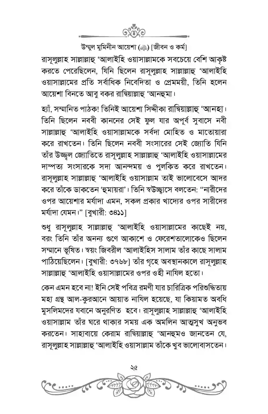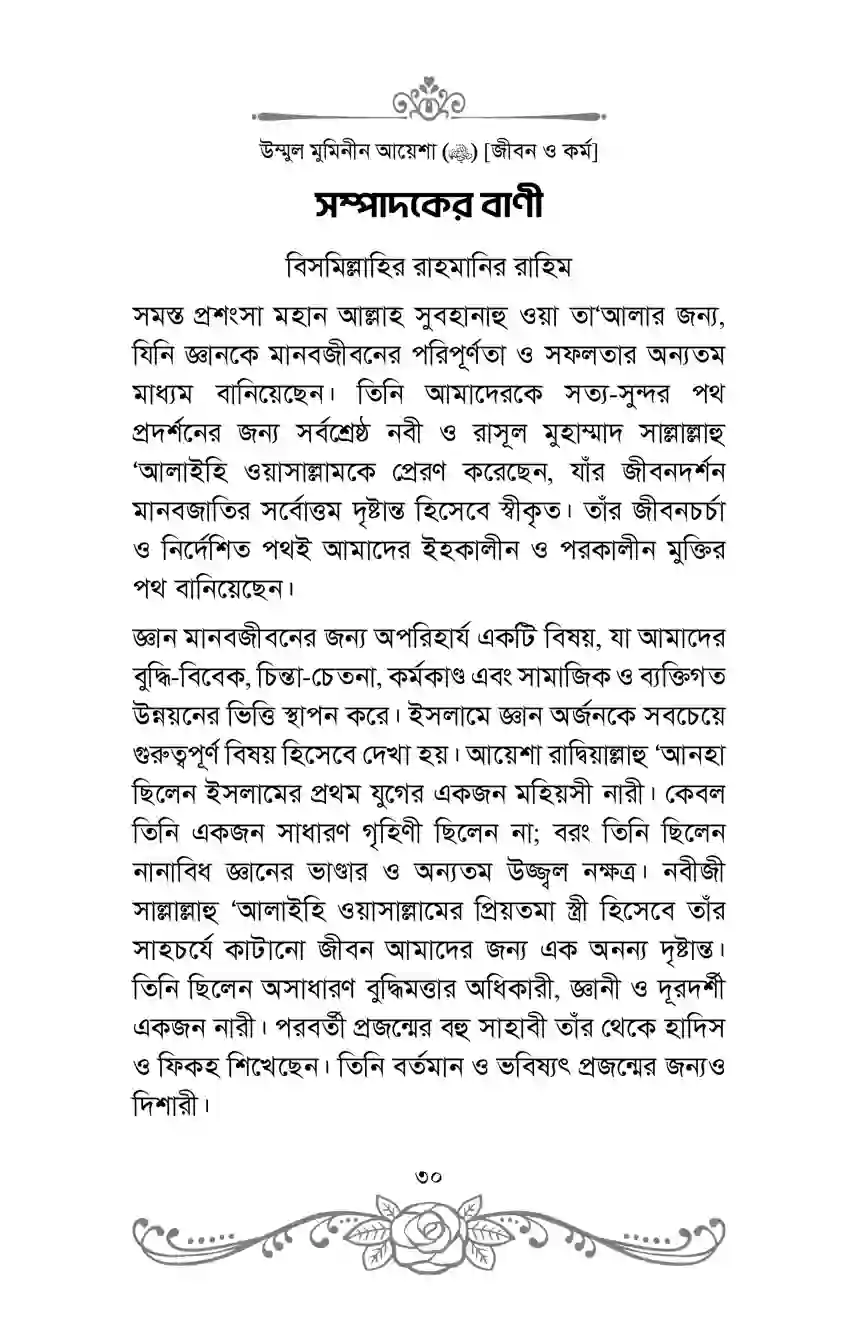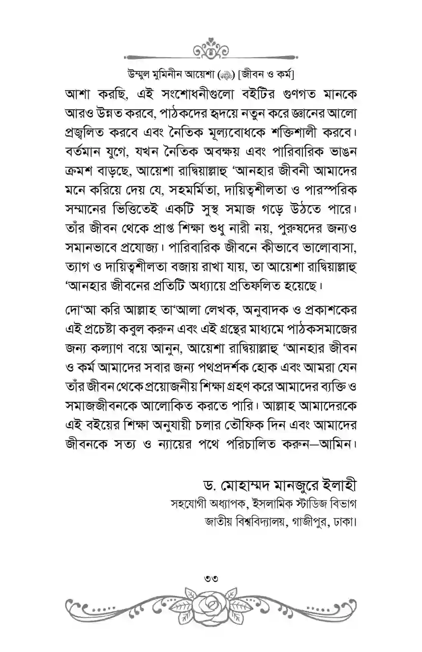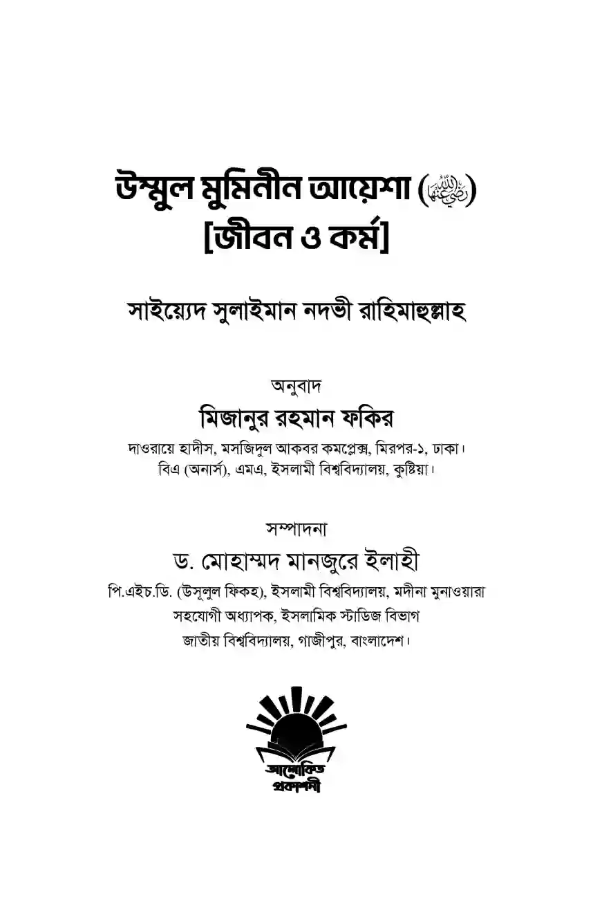 “উম্মুল মুমিনীন আয়েশা রাদ্বিয়াল্লাহু ‘আনহা [জীবন ও কর্ম]” শীর্ষক গ্রন্থটিতে ইসলামের অন্যতম মহান নারীব্যক্তিত্ব, প্রিয়নবী সাল্লাল্লাহু ‘আলাইহি ওয়াসাল্লামের অন্যতম সহধর্মিণী এবং জ্ঞানের আলোকবর্তিকা উম্মুল মুমিনীন আয়েশা রাদ্বিয়াল্লাহু ‘আনহার অনন্যসাধারণ জীবন, চরিত্র ও সমাজে তাঁর অবদান তুলে ধরার চেষ্টা করা হয়েছে।